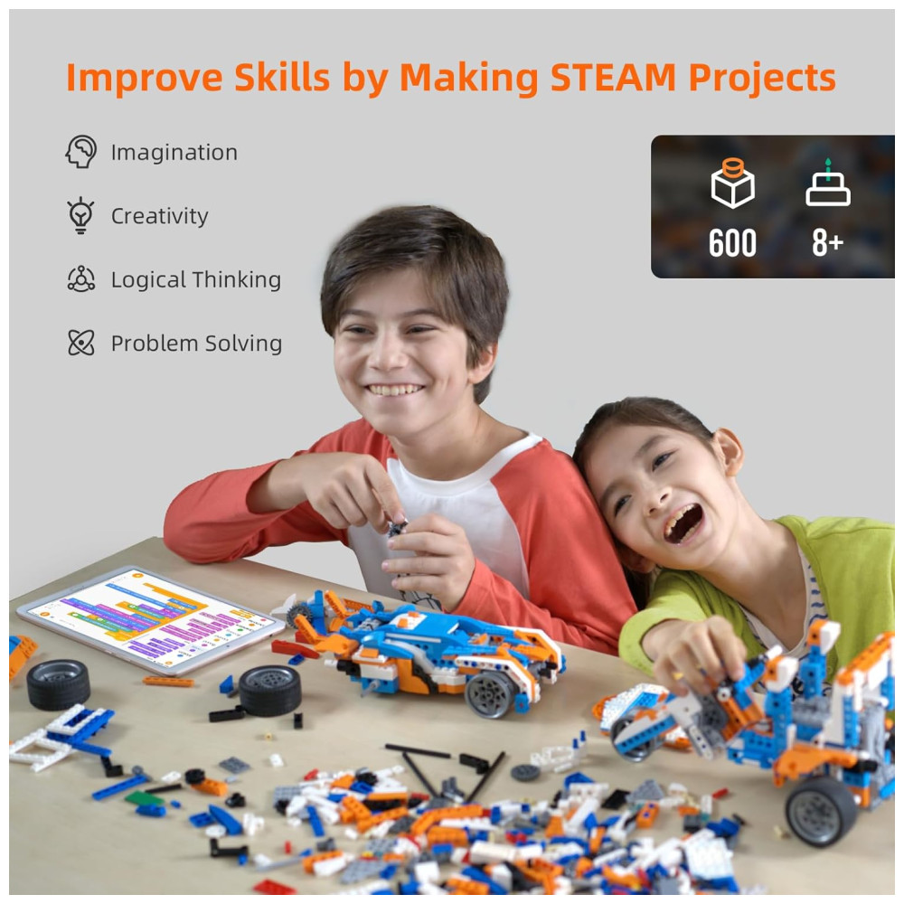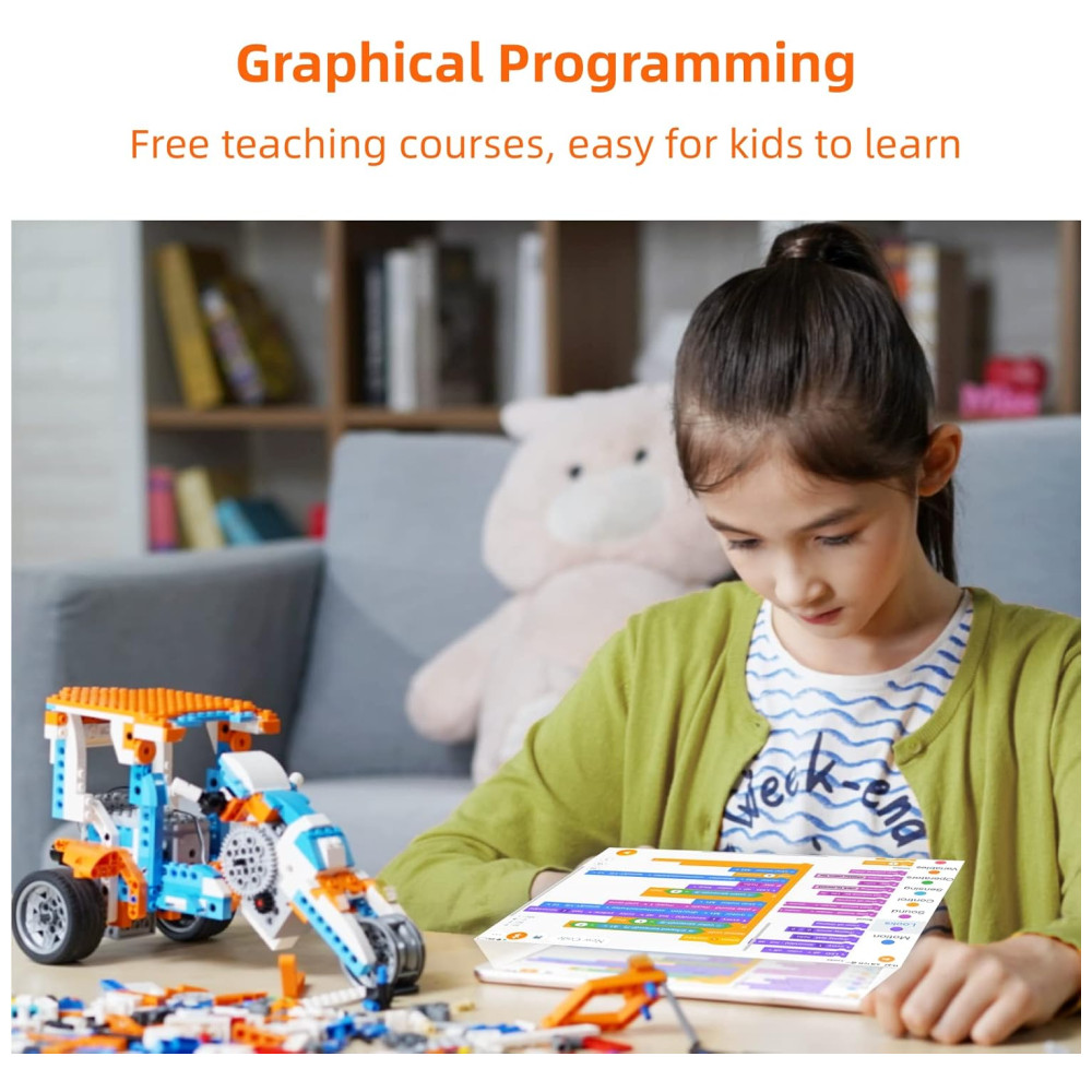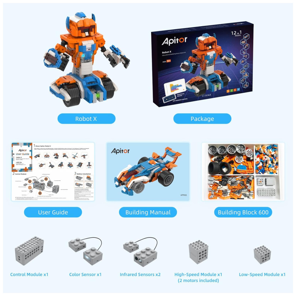 Com a interface de codificação de arrastar e soltar, as crianças aprendem facilmente como programar seu robô para seguir linhas, evitar obstáculos, detectar distância, controlar luzes LED e muito mais, no aplicativo Apitor Robot seguindo as instruções passo a passo. Além disso, as crianças desenvolvem o pensamento lógico, a criatividade na resolução de problemas e aprendem conhecimentos de ciência, tecnologia, engenharia e matemática.