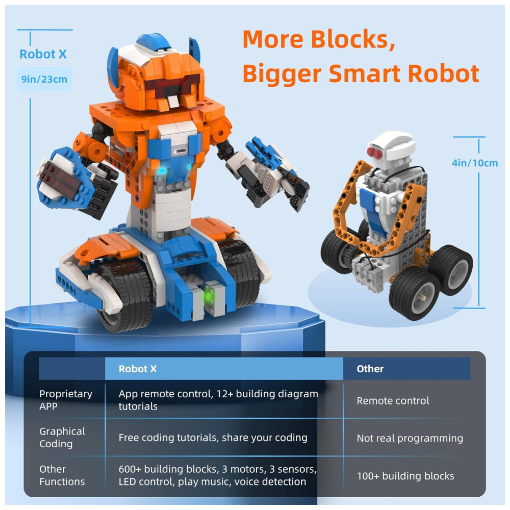 O TOP STEM ROBOT BRINQUEDOS PARA CRIANÇAS 812 Robot X é um brinquedo educacional STEM que permite às crianças adentrarem no mundo da robótica de forma divertida e educativa. Com mais de 600 blocos de construção, os pequenos podem transformá los em 12 robôs pré projetados, inspirando sua criatividade e imaginação. Este brinquedo robô é compatível com marcas populares de blocos de construção do mercado, oferecendo às crianças um espaço criativo mais amplo e capacidade de expansão.