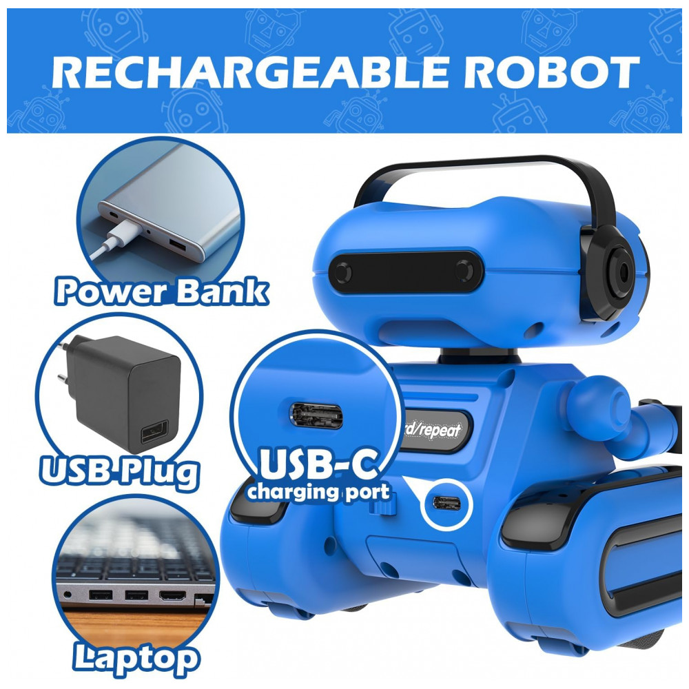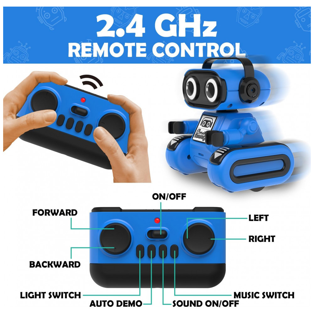 Robô de controle remoto Hasviey azul com dança música gravação e repetição