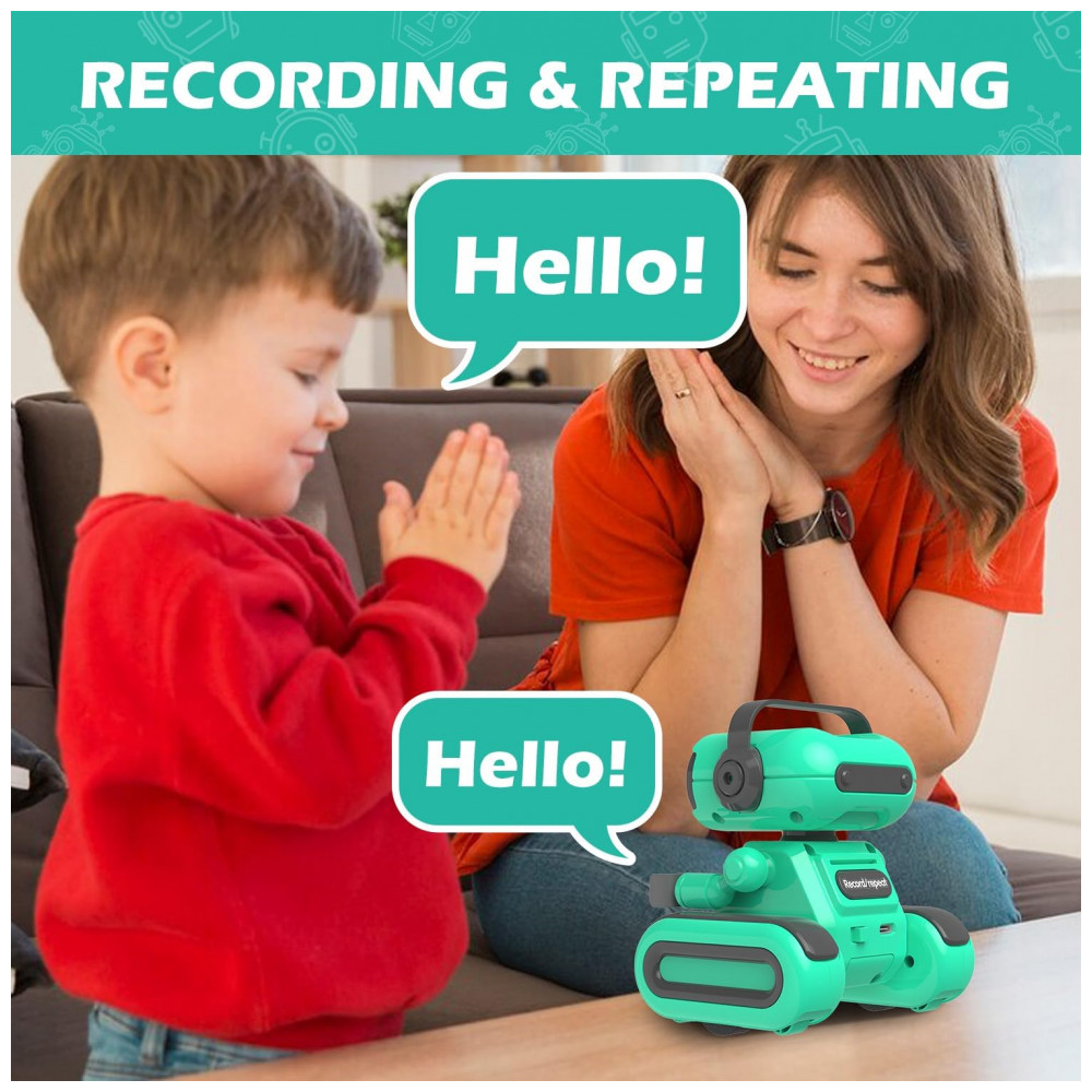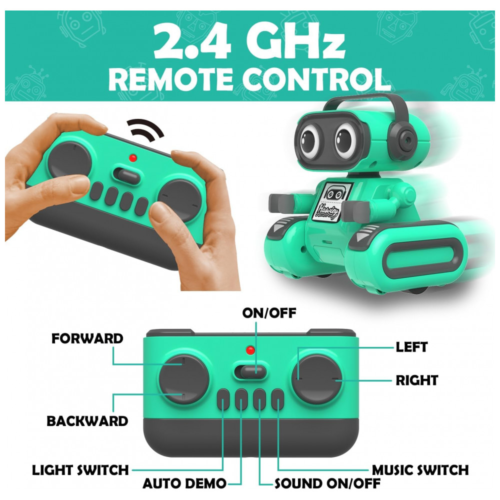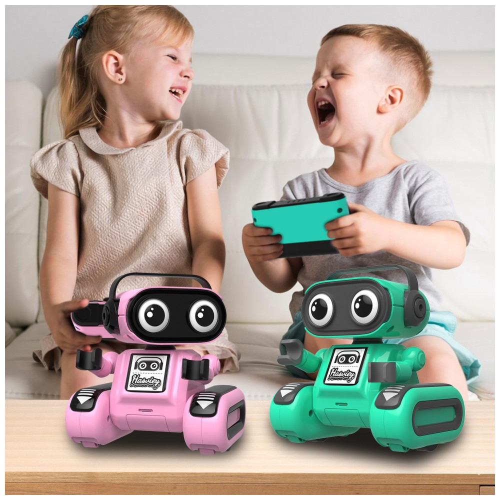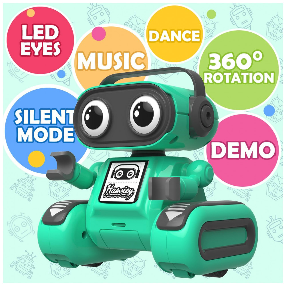 Robô de controle remoto Hasviey verde com dança música gravação e repetição