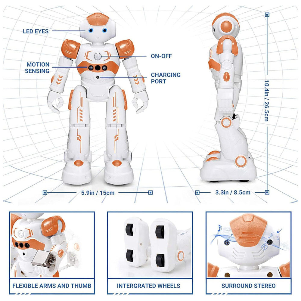 Robô de Controle Remoto KingsDragon para Crianças Robô Inteligente Programável com Sensor de Gestos para Crianças de 3 a 8 Anos