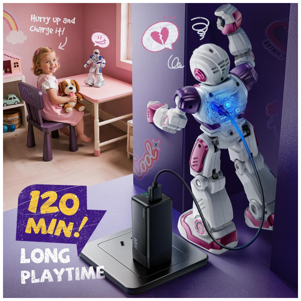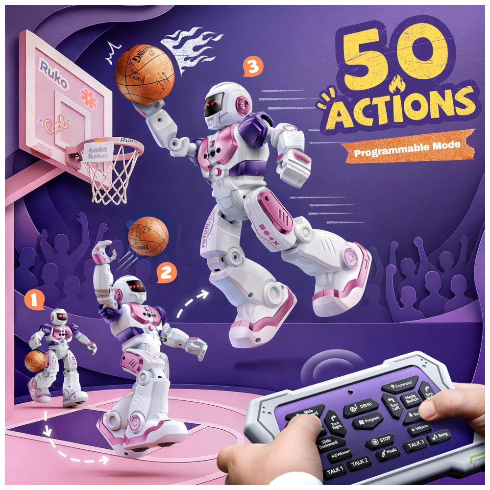Robô de controle remoto Ruko 6088 para crianças rosa com sensores de gestos programação de até 50 movimentos canto dança e bateria recarregável