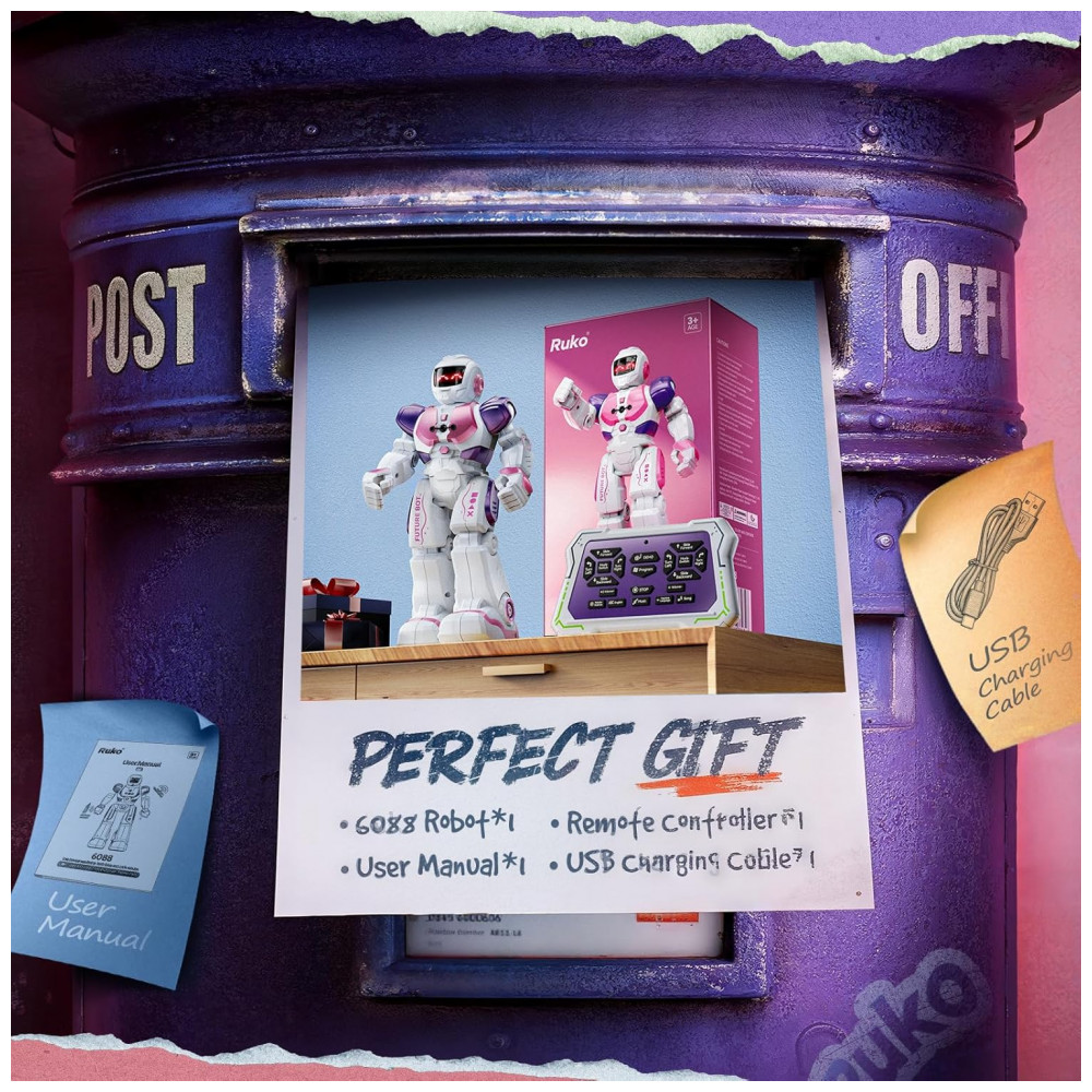 Conteúdo da embalagem: 1 robô Ruko 6088, 1 controle remoto, 1 cabo USB, 1 manual do usuário
