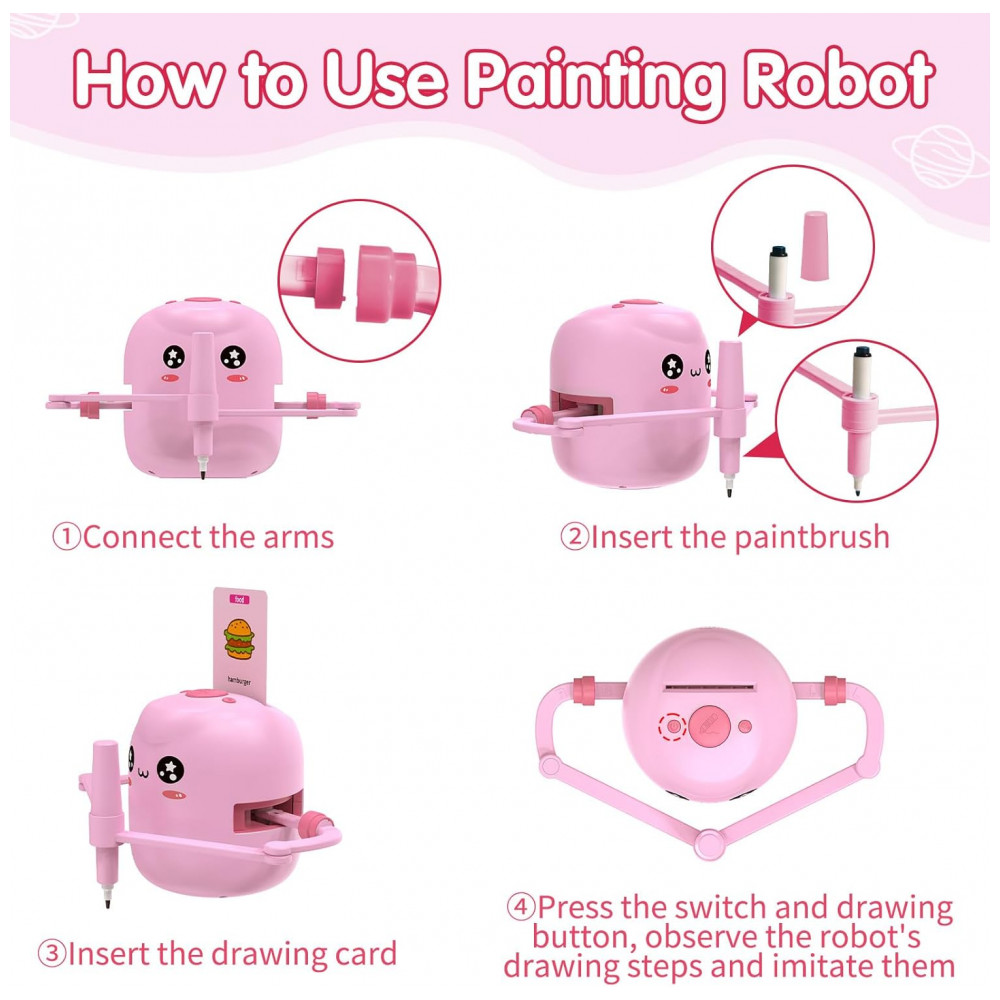 Robô de Desenho para Crianças com 150 Cartões Robô de Pintura Educacional Interativo com Interação por Voz ERYMCS