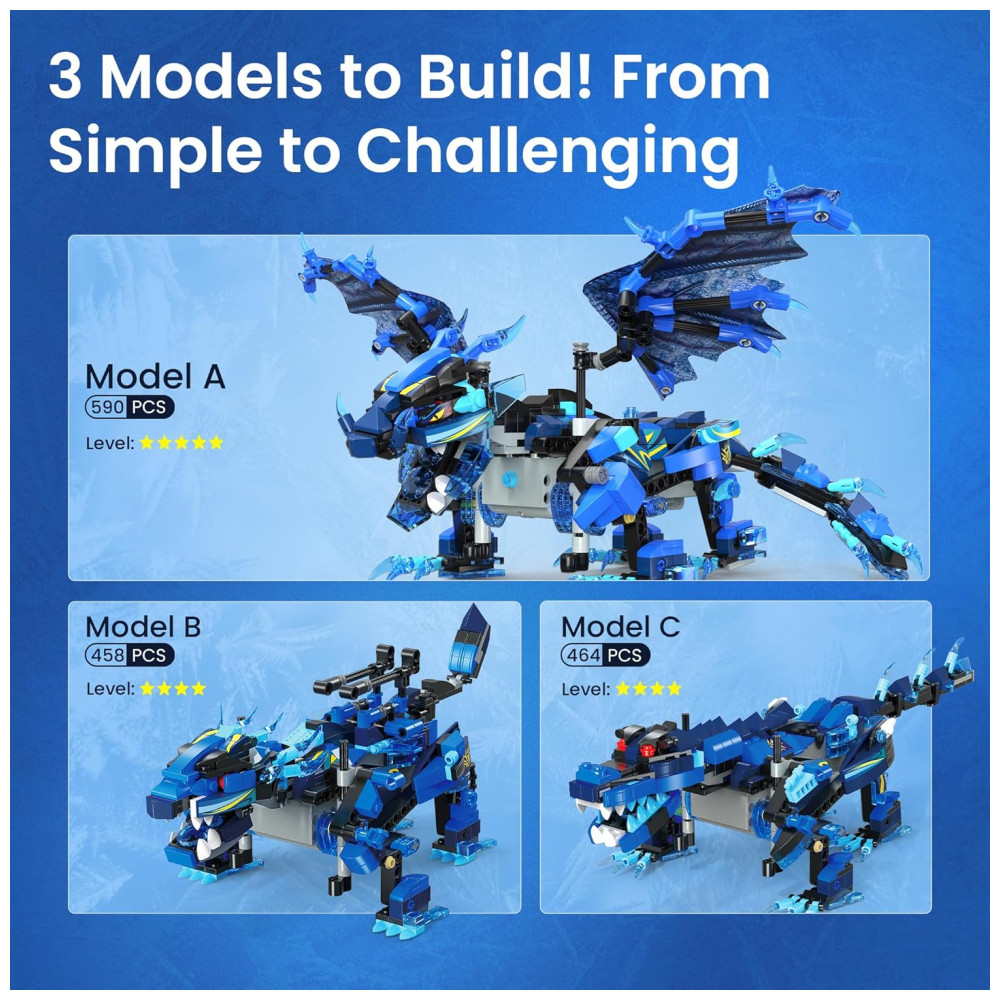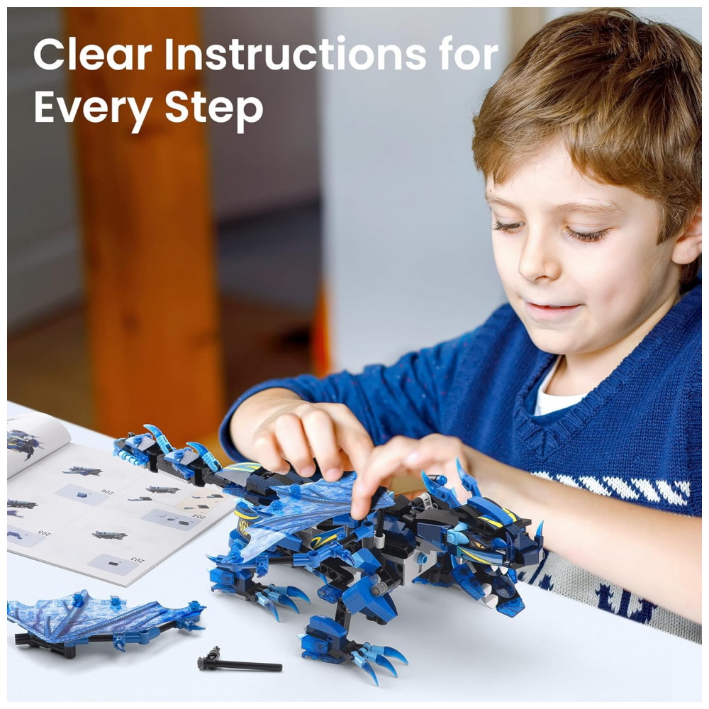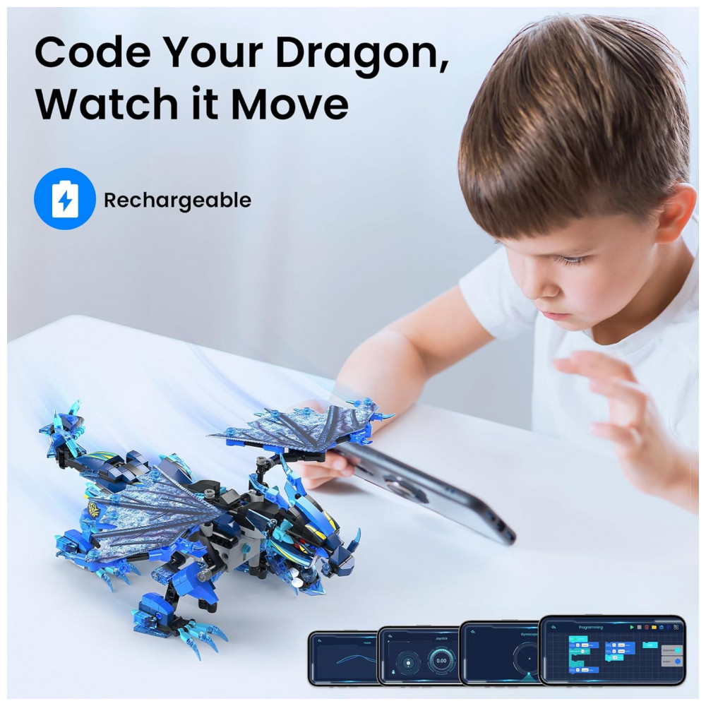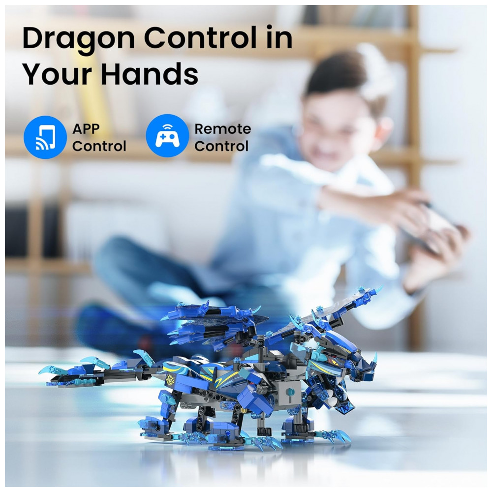 Robô Dragão Sillbird 549 Peças com Controle Remoto e APP para Crianças Acima de 6 Anos Azul
