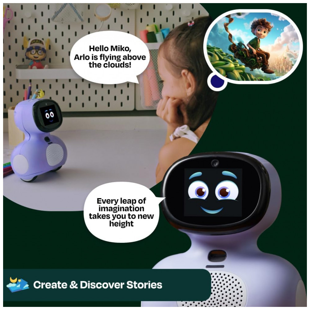 Recursos adicionais: Luzes e sons integrados, atividades STEAM, suporte a assinatura com apps e conteúdos extras por meio de Miko Max