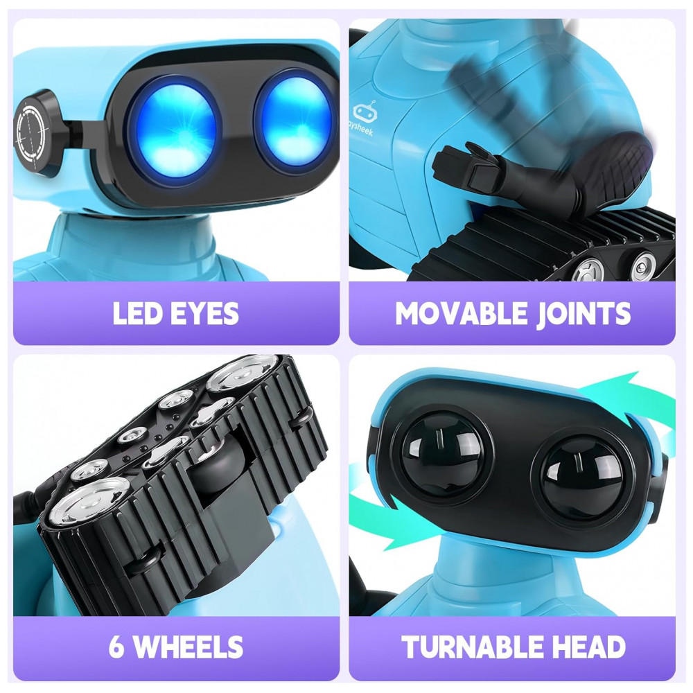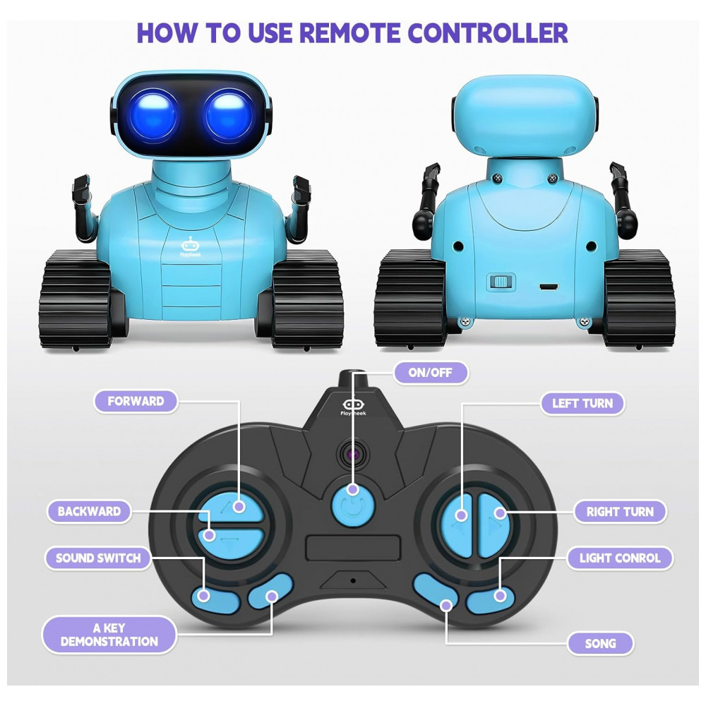 Robô Emocional Programável Roxo – Playsheek Controle Remoto 24 GHz com Dança Luzes LED e Recarga USB para Crianças