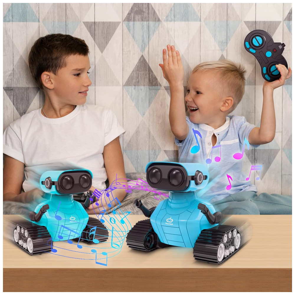 O robô emocional da marca Playsheek oferece uma combinação encantadora de tecnologia, entretenimento e estímulo para crianças a partir de cerca de 3 anos. Com acabamento em tom roxo vibrante, este brinquedo interativo exibe luzes LED nos “olhos” que podem piscar ou permanecer acesas, produz músicas integradas e dança ao ritmo da música com apenas um toque do botão.