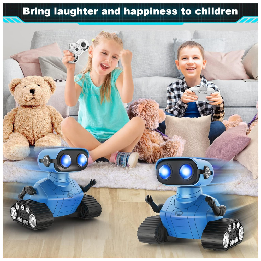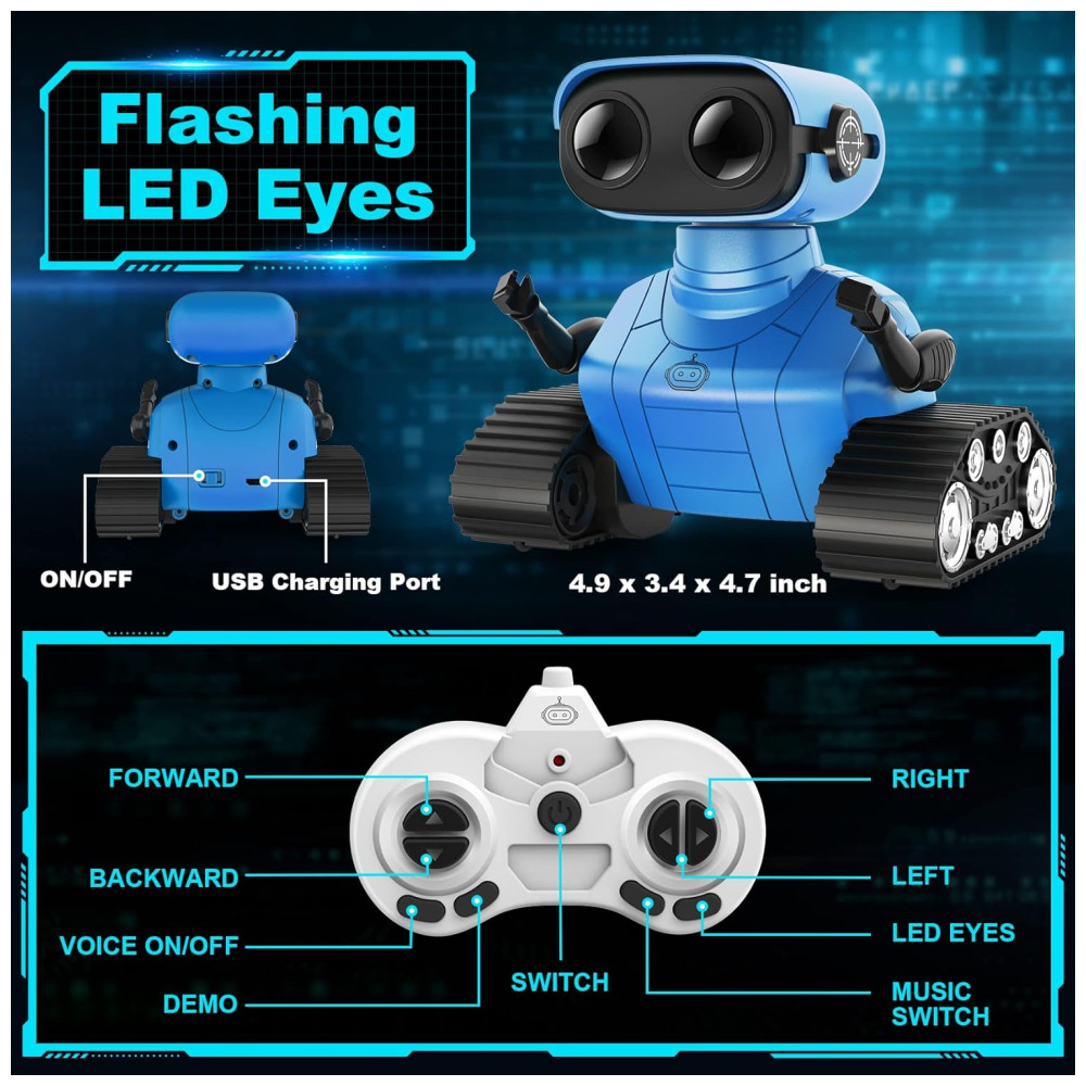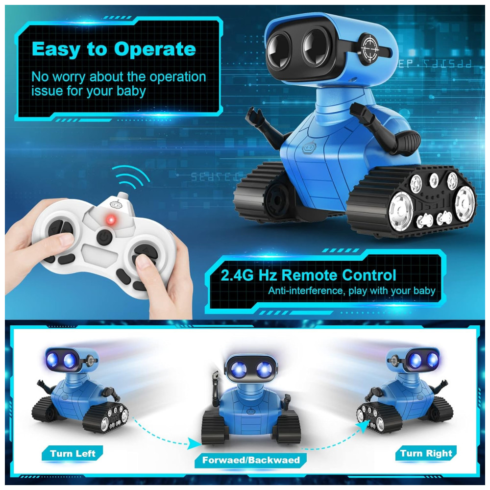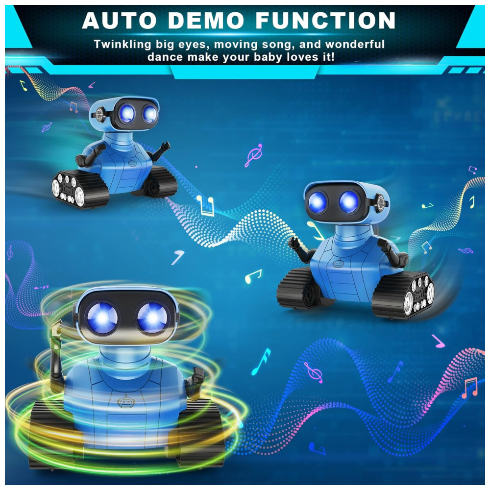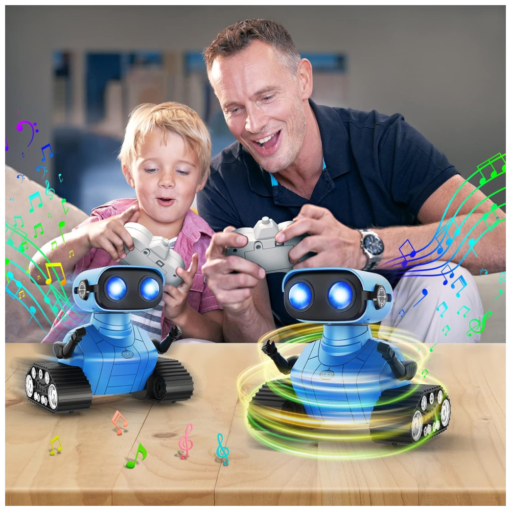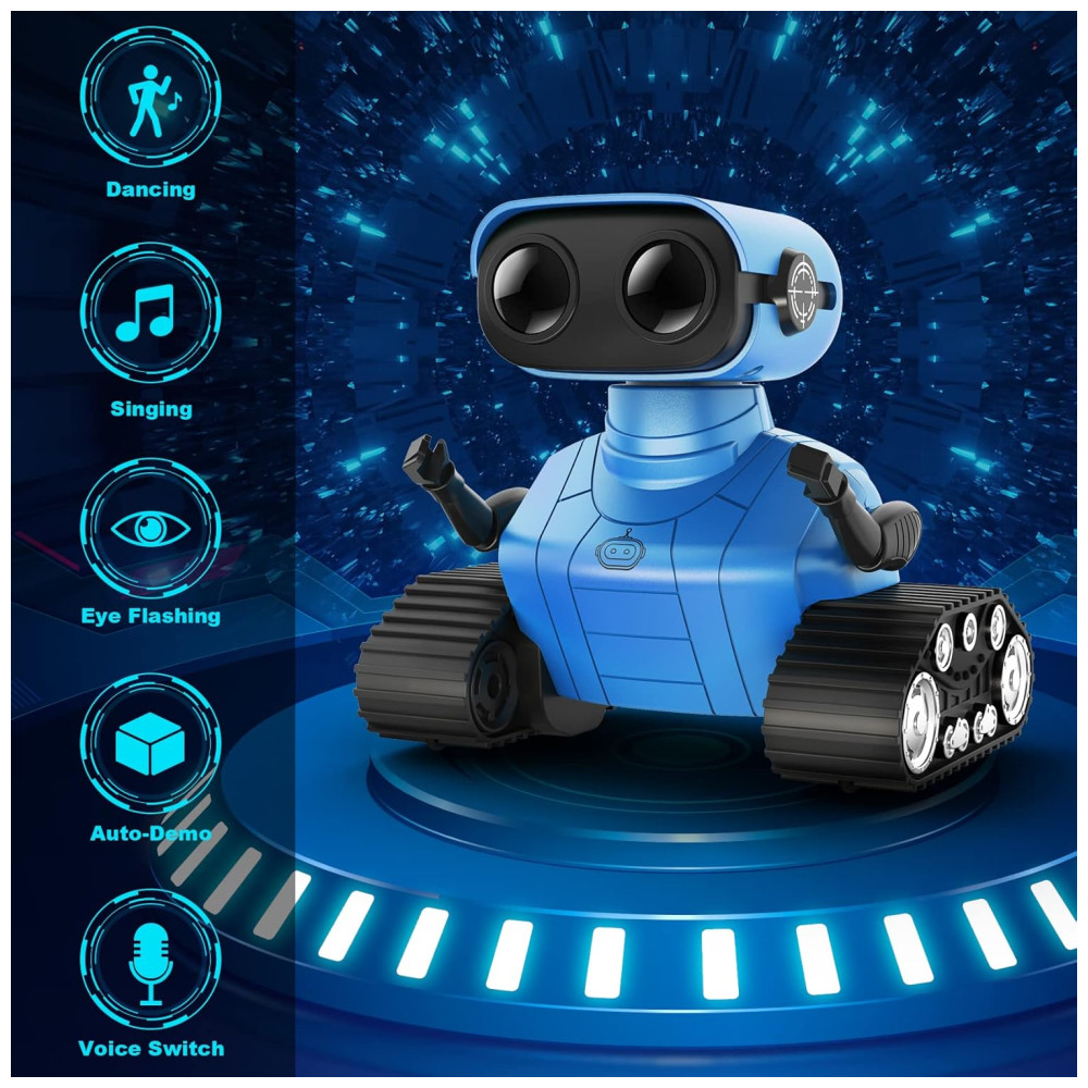 O Robô Multifuncional da Hamourd possui olhos de LED que se acendem ao ligar o robô, podendo piscar ou fechar por controle remoto. Com comando de voz inteligente, ao ligá-lo, ele começa a falar e pode cantar diferentes músicas, com faixas que podem ser trocadas pelo controle remoto. O robô possui um design único com a parte superior representando um robô fofo com olhos de LED e cabeça e braços flexíveis, enquanto a parte inferior é inspirada em um tanque contínuo. Além disso, é equipado com esteiras de tanque, 6 rodas e controle remoto de 2.4GHz, permitindo movimentos e danças controlados pela criança. Ideal para iniciantes em brinquedos de controle remoto, o robô oferece uma demonstração de dança automática com um clique, proporcionando horas de diversão. Além de entreter, o robô é educativo, estimulando habilidades operacionais e imaginação das crianças. Com músicas alegres e design cativante, é um presente emocionante e ideal para aniversários e festas. Inclui 1 robô controlado por controle remoto, 1 controle remoto, 1 cabo de carregamento Type C, 1 chave de fenda, 1 manual do usuário e pilhas para o controle.