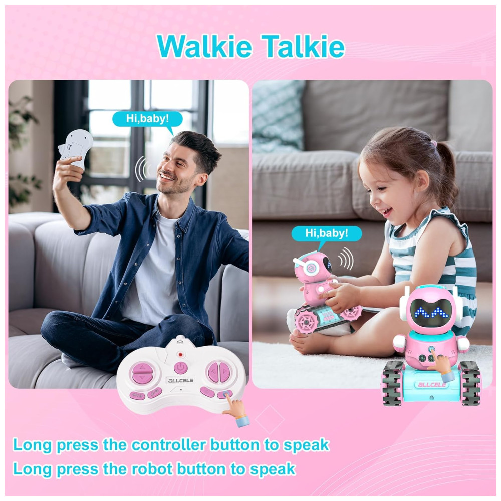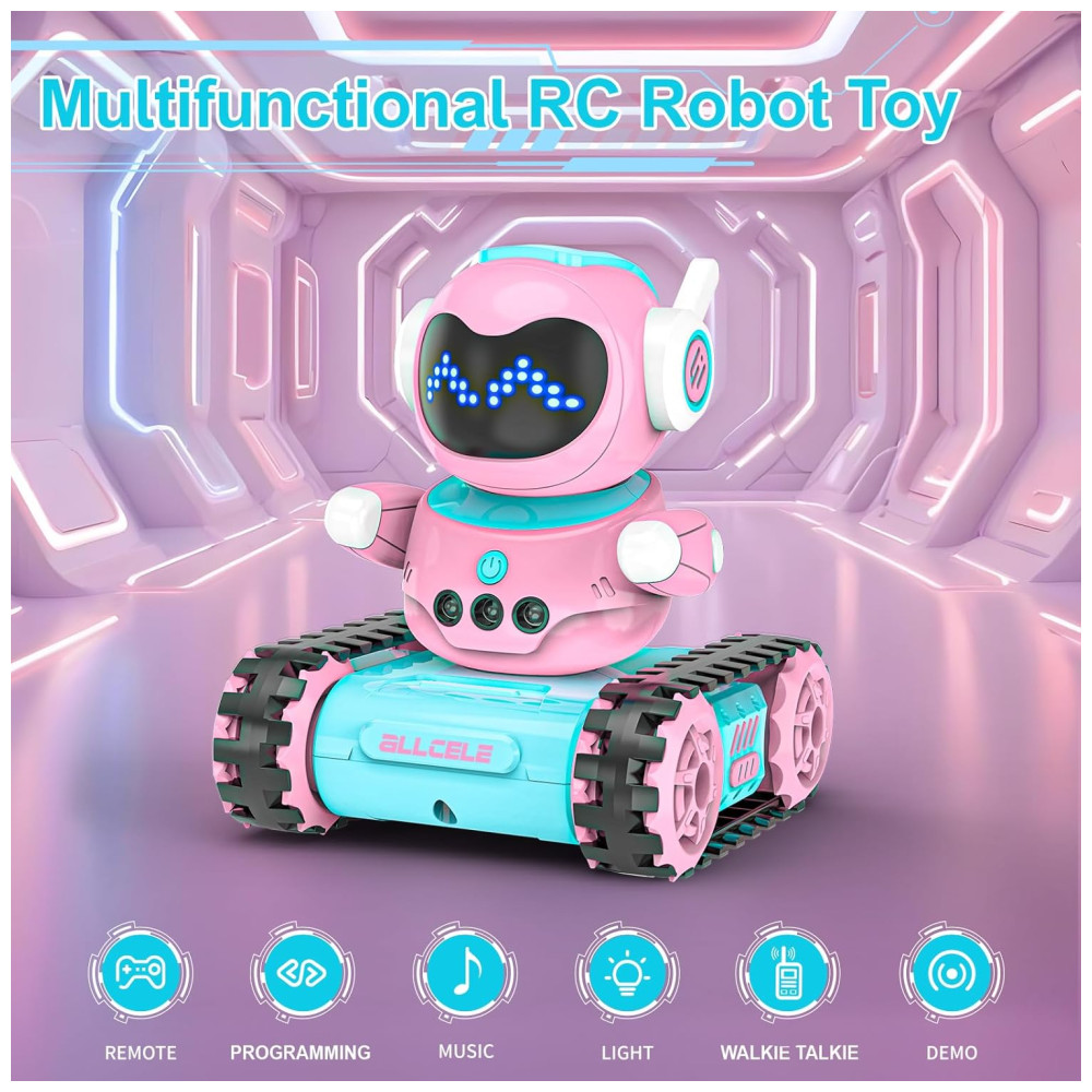 Robô Infantil ALLCELE LED RC Brinquedo de Controle Remoto para Meninas com Walkie Talkie Programação Música Demonstração e Função LED.