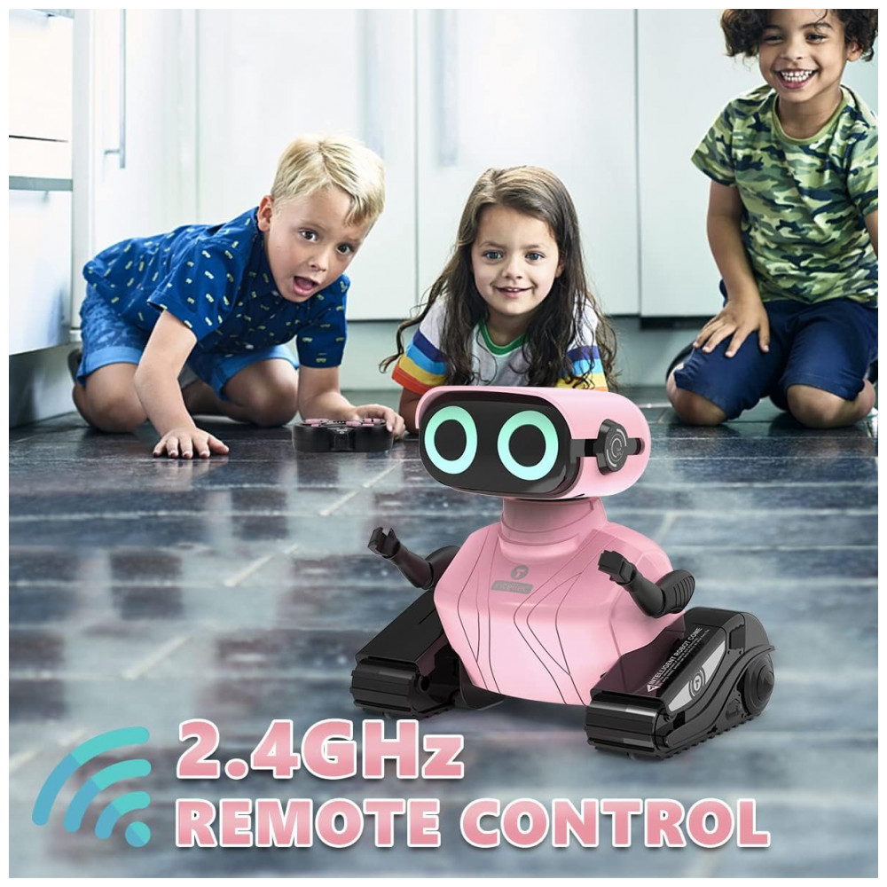 Robô Interativo com Controle Remoto Olhos LED que Brilham Música e Dança 3 Anos GILOBABY Rosa
