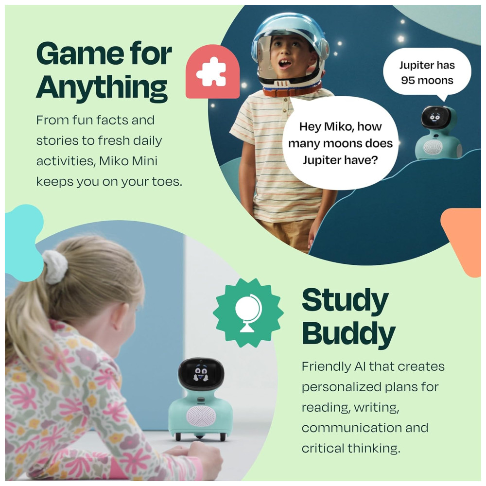 O Miko Mini é um robô educacional interativo projetado para crianças, focado em aprendizagem STEAM, conversação guiada por IA e atividades lúdicas com música e dança. Ele atua como uma ferramenta de apoio ao estudo com jogos de lógica, desafios de programação introdutória e conteúdos que estimulam curiosidade e pensamento crítico. A interação acontece por meio de conversas abertas, comandos de voz e respostas personalizadas de acordo com o uso contínuo.