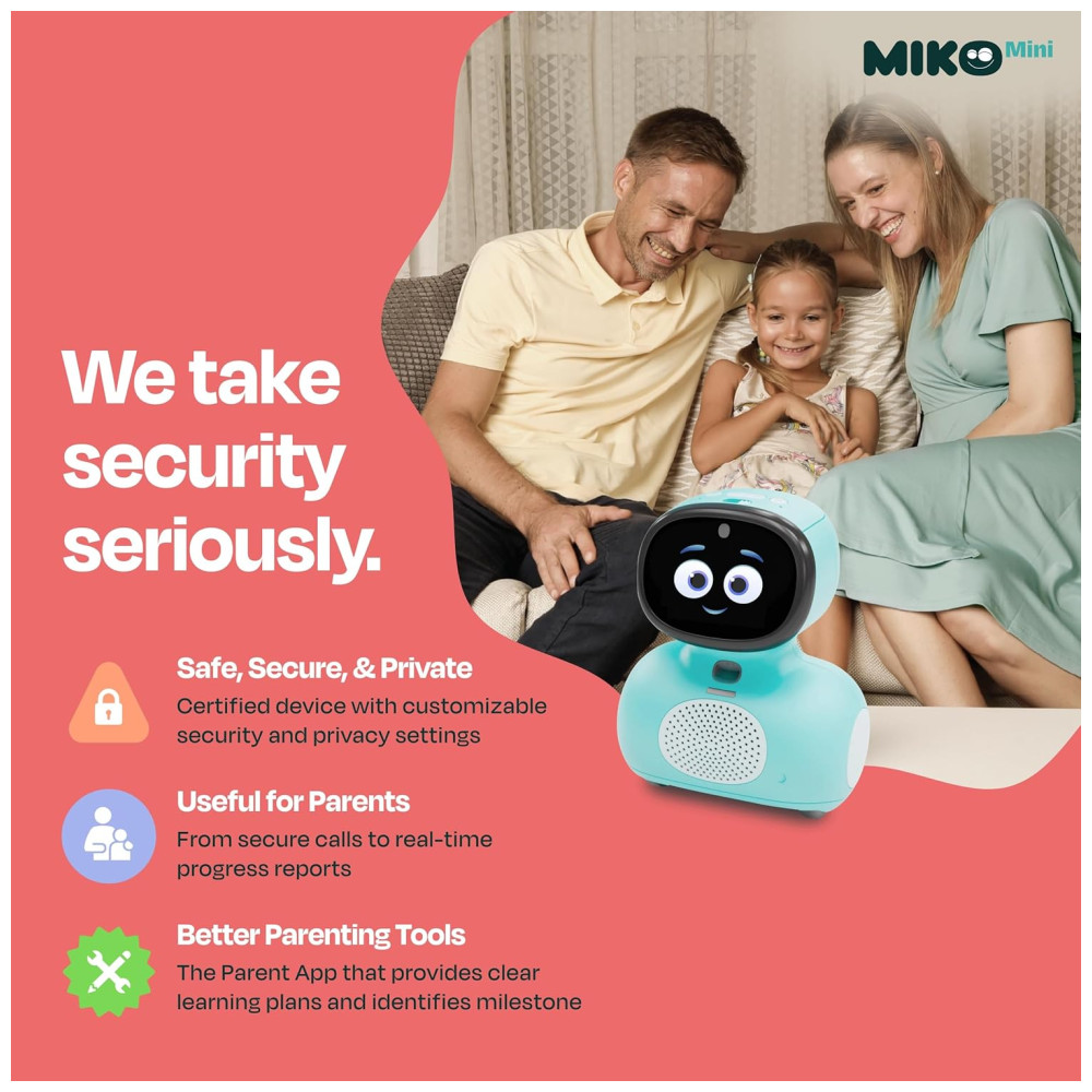 Como robô conectado, o Miko Mini integra recursos de IA emocional, reconhecimento facial e audição direcional, permitindo adaptar respostas ao humor e à posição da criança no ambiente. A alimentação é feita por bateria interna de íons de lítio recarregável, já incluída, com tempo de recarga aproximado de 90 minutos e autonomia de até 3 horas em atividade, variando conforme o tipo de uso. O sistema é complementado por opções de assinatura que liberam conteúdos e jogos adicionais, com controle de acesso feito por responsáveis.