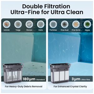 Filtração: Ultrafina, até 50 mícrons; skimmer integrado.
