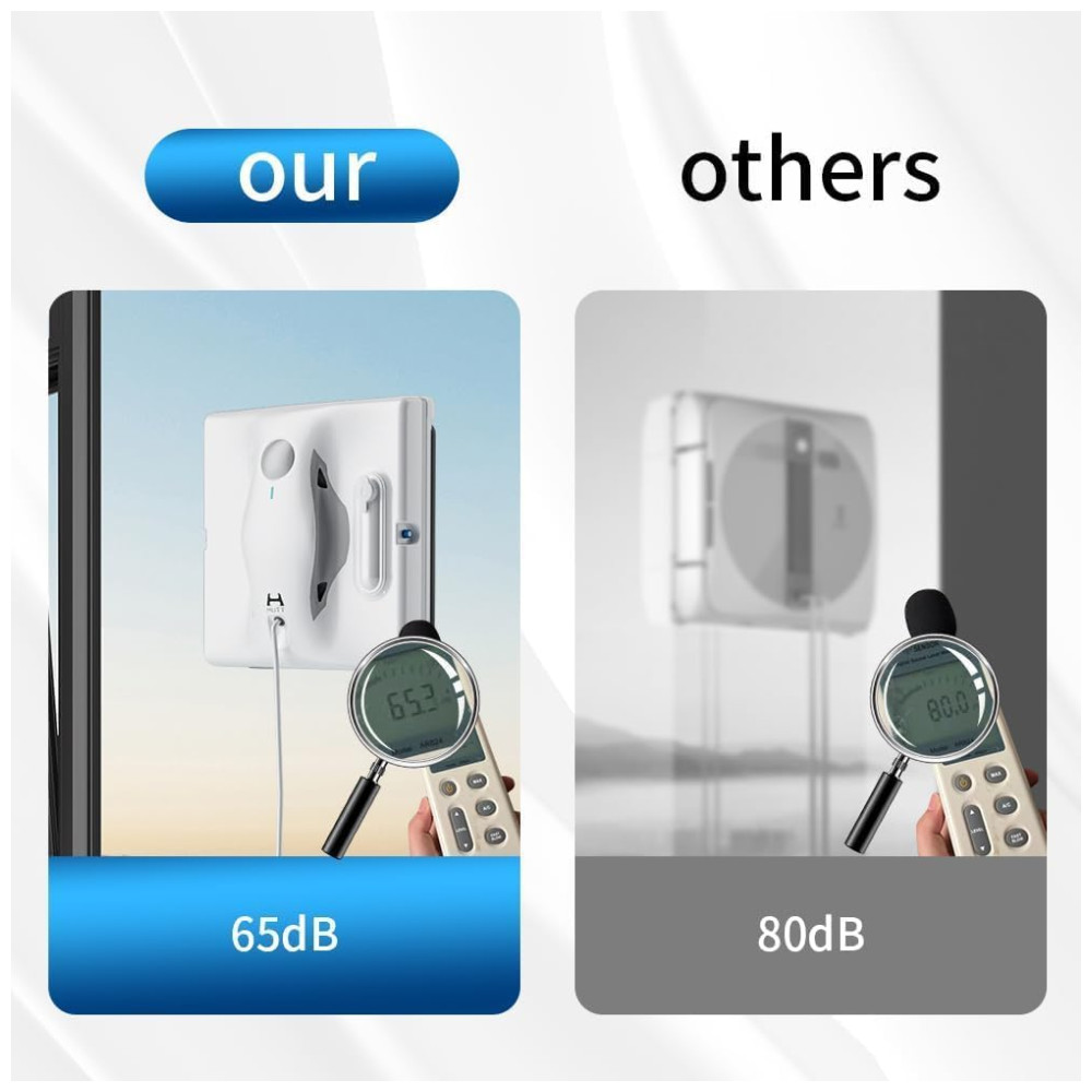 18503800Pa Poder de Sucção Auto Regulável: Adapta se automaticamente ao grau de sujeira nas janelas, garantindo uma limpeza eficaz e segura.