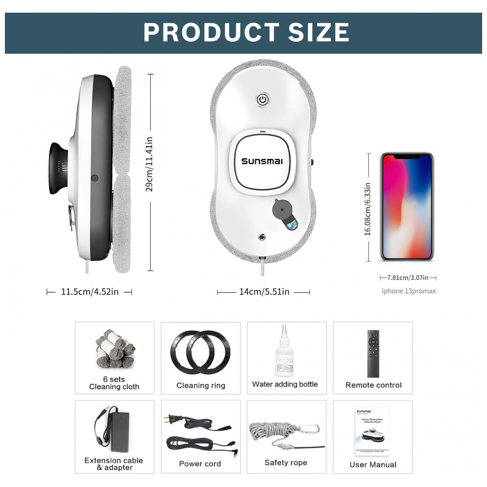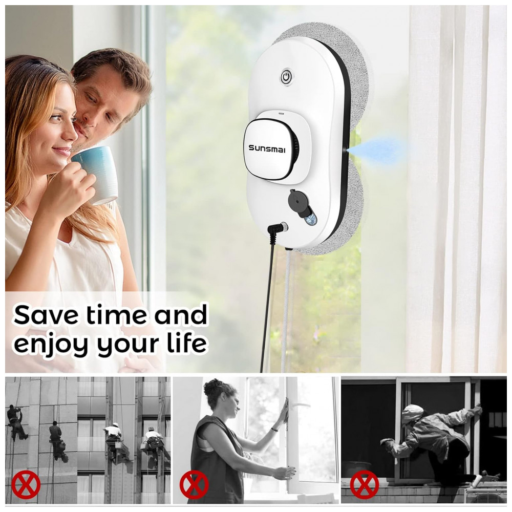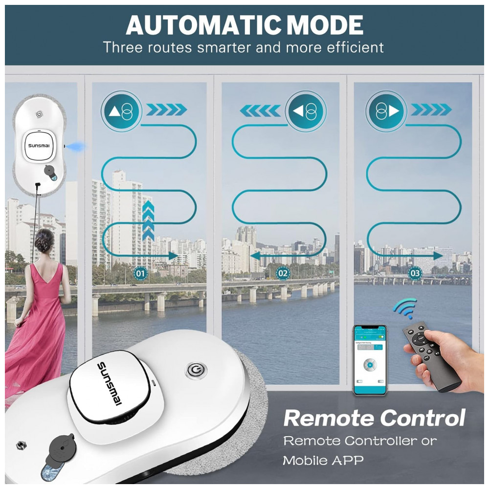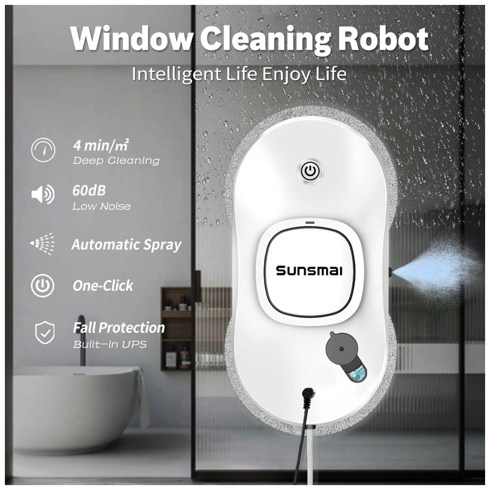 Robô Limpador de Janelas com Controle Remoto e Spray de Água Automático 110V SUNSMAI SWLR0001 Branco