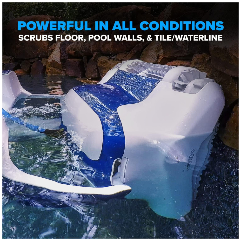 Potentes escovas duplas de lavagem atacam completa e eficientemente contaminantes difíceis, removendo algas e bactérias do chão, paredes e linha de água para uma limpeza profunda em 2,5 horas.