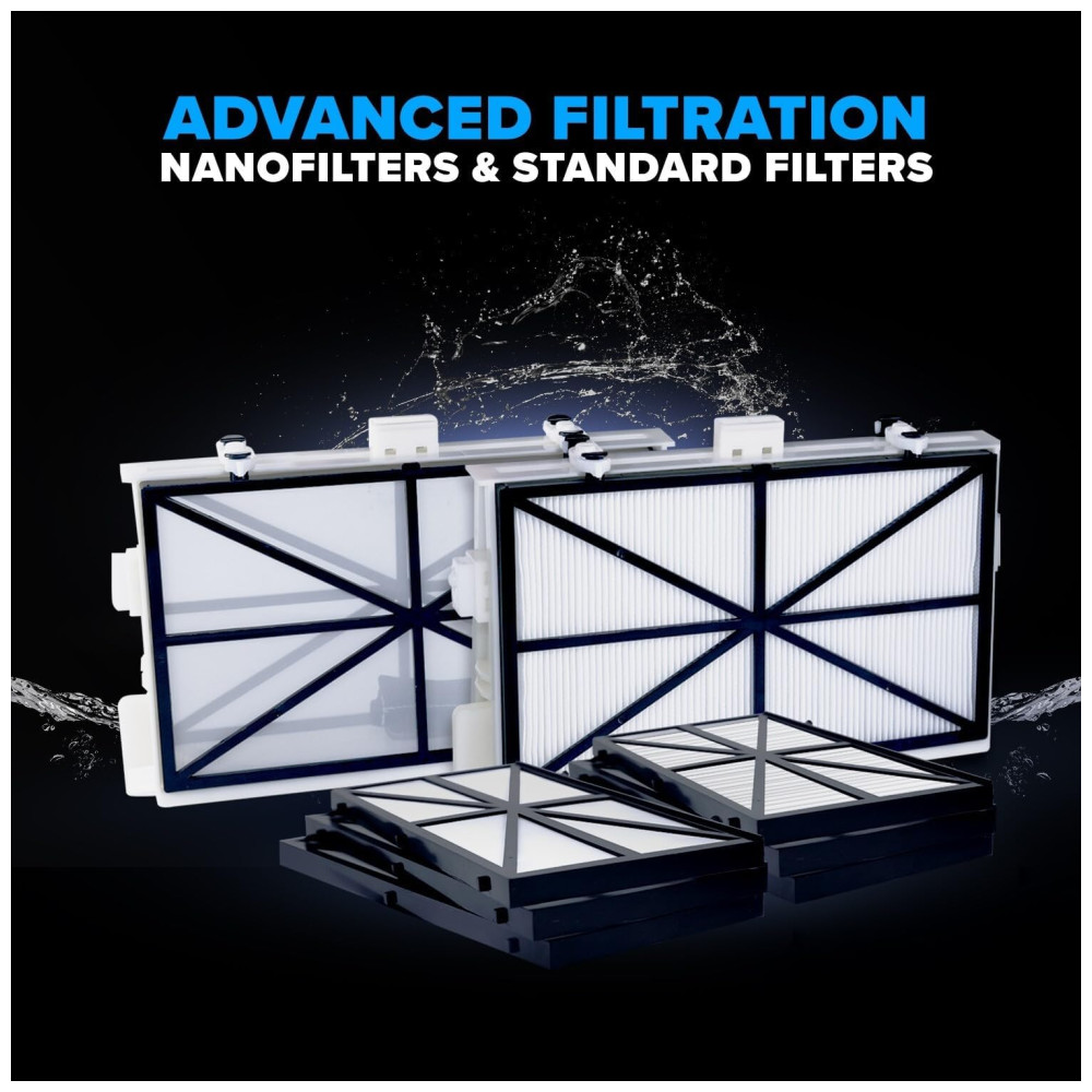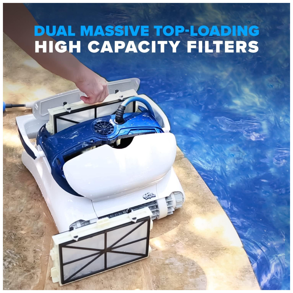Não há sacos bagunçados para limpar. Enormes filtros de cartucho de carregamento superior capturam e retém detritos finos e ultrafinos para uma piscina limpa ideal. Inclui conjuntos de cartuchos de filtro ultrafinos e padrão.