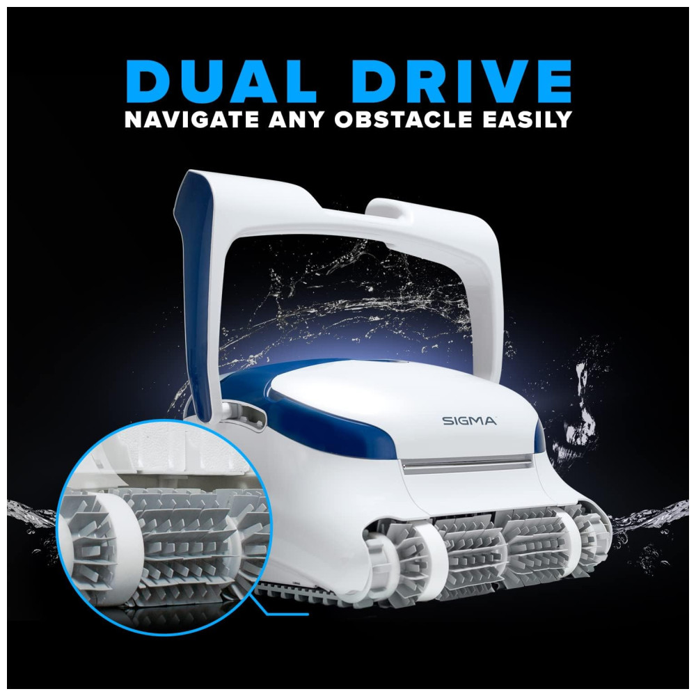 Robô Limpador de Piscina com Controle por APP Giroscópio Cronômetro Semanal e Limpeza de Linha de Água Dolphin Sigma Robotic Pool Cleaner Branco e Azul