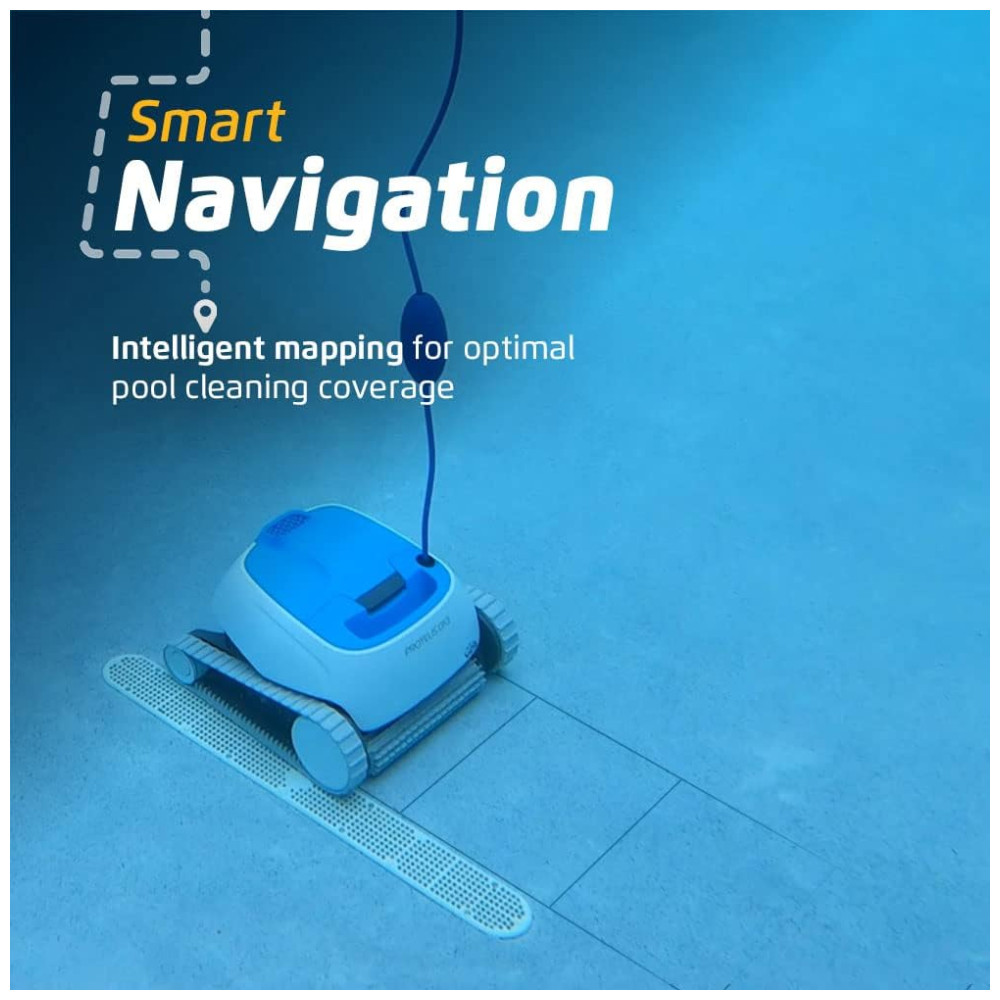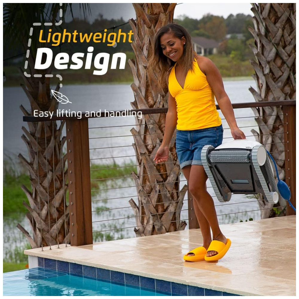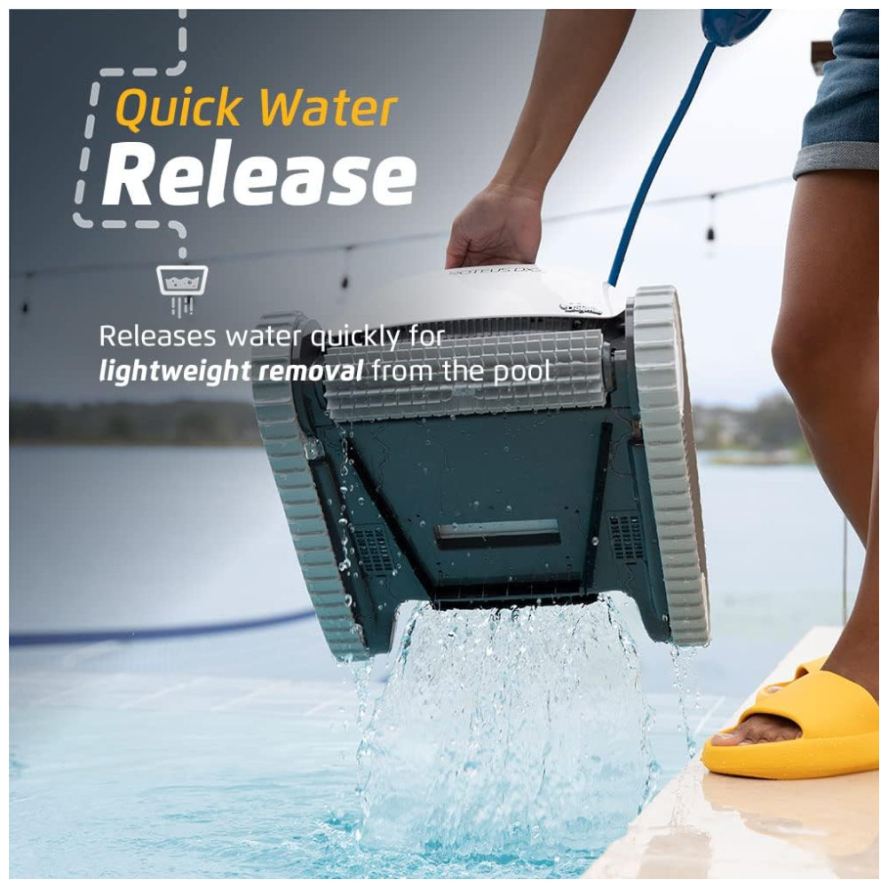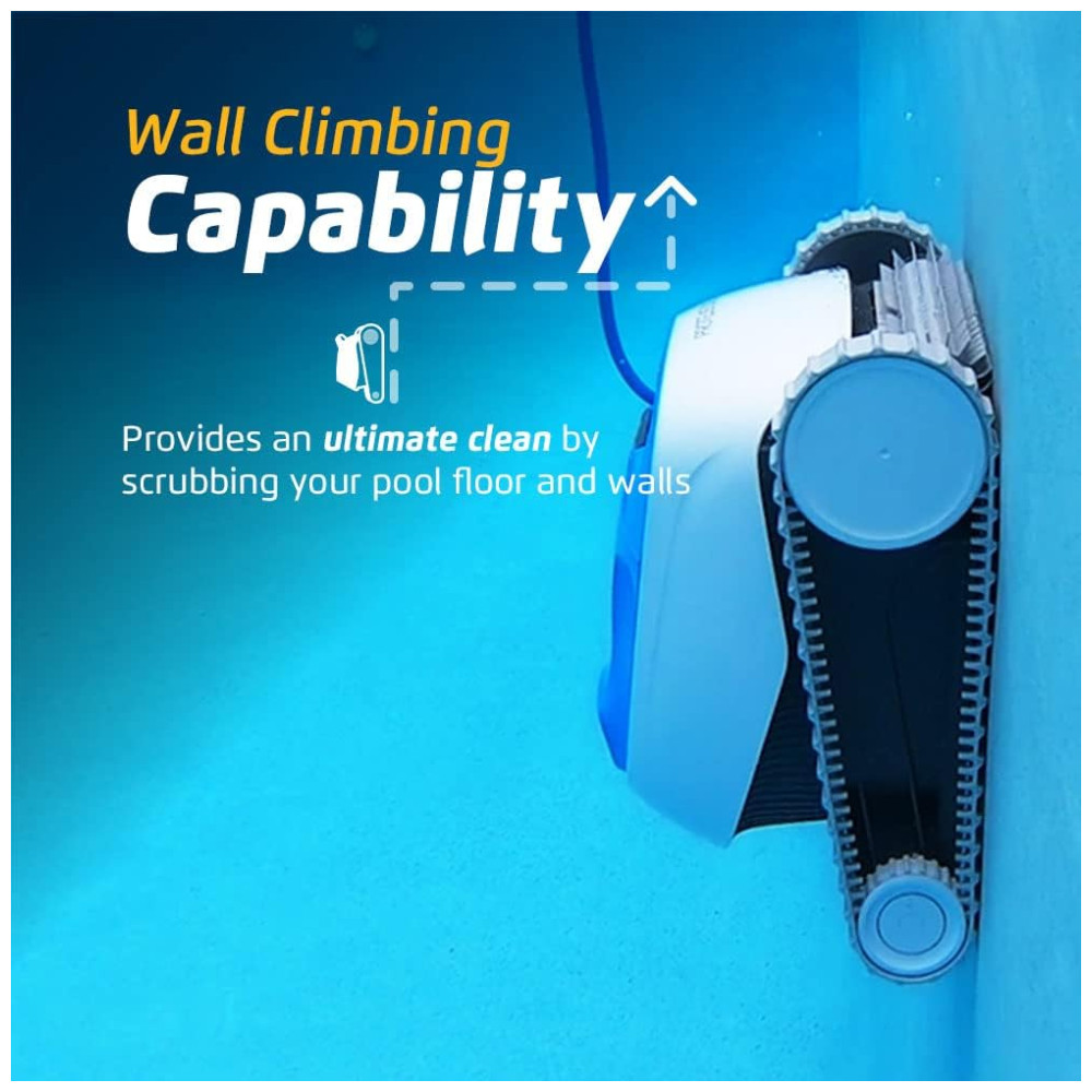 O aspirador robótico para piscina Dolphin Proteus DX3 apresenta poderosos recursos de escalada em paredes para esfregar o chão e as paredes da sua piscina, independentemente do formato ou tipo de superfície da piscina.