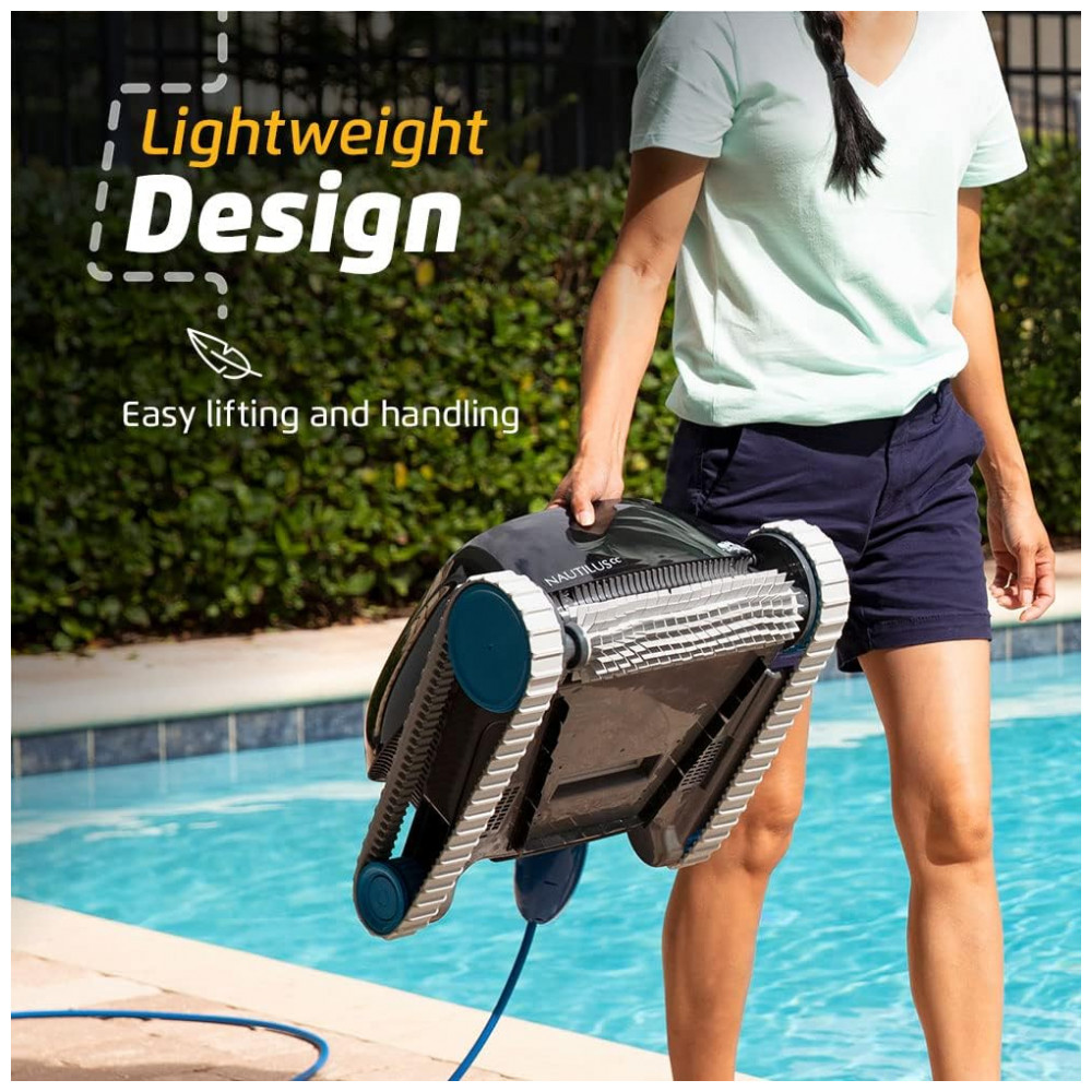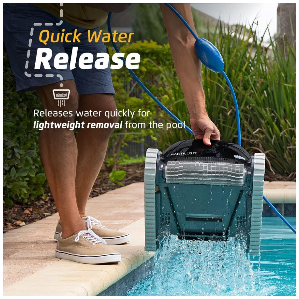 O aspirador robótico para piscina Dolphin Nautilus CC apresenta poderosos recursos de escalada em paredes para esfregar o chão e as paredes da sua piscina, independentemente do formato ou tipo de superfície da piscina.