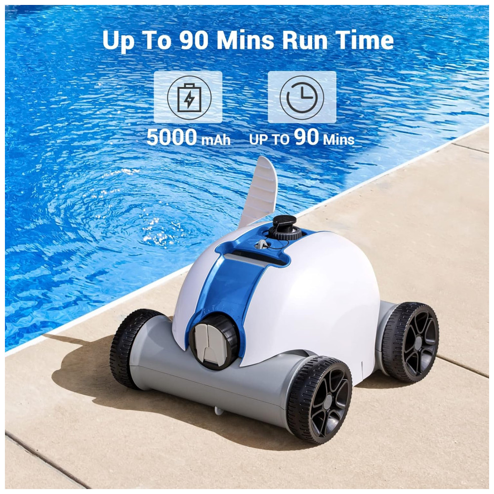 Robô Limpador de Piscina sem Fio com Bateria até 90 minutos e Recarregável PAXCESS HJ1103 Branco e Azul