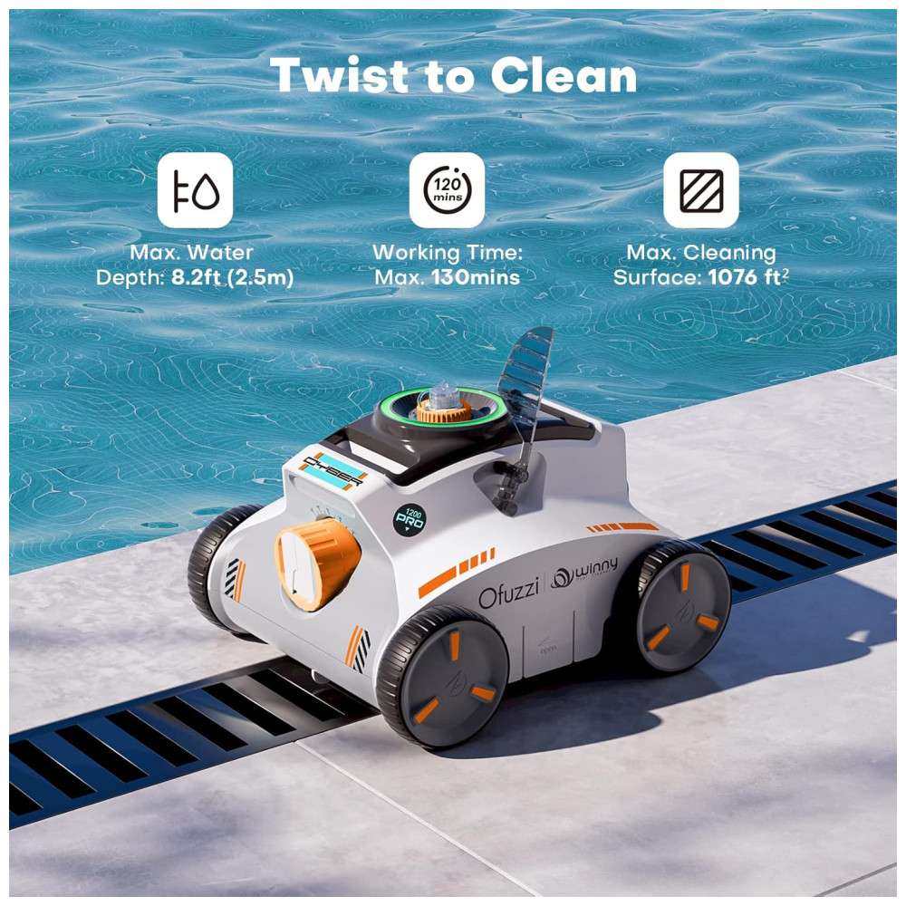 Robô Limpador de Piscina sem Fio com Tempo de Execução Máximo de 2H e Potência de Sucção Mais Forte Ofuzzi Cyber 1200 Pro Branco e Laranja
