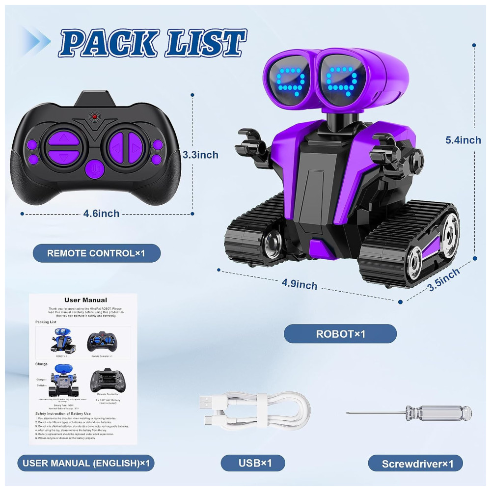 Presente Perfeito: Ótimo brinquedo para meninos e meninas de 3, 4, 5 e 6 anos. O pacote inclui 1 robô, 1 controle remoto, 1 cabo USB de carregamento, 1 chave de fenda e um manual de instruções.