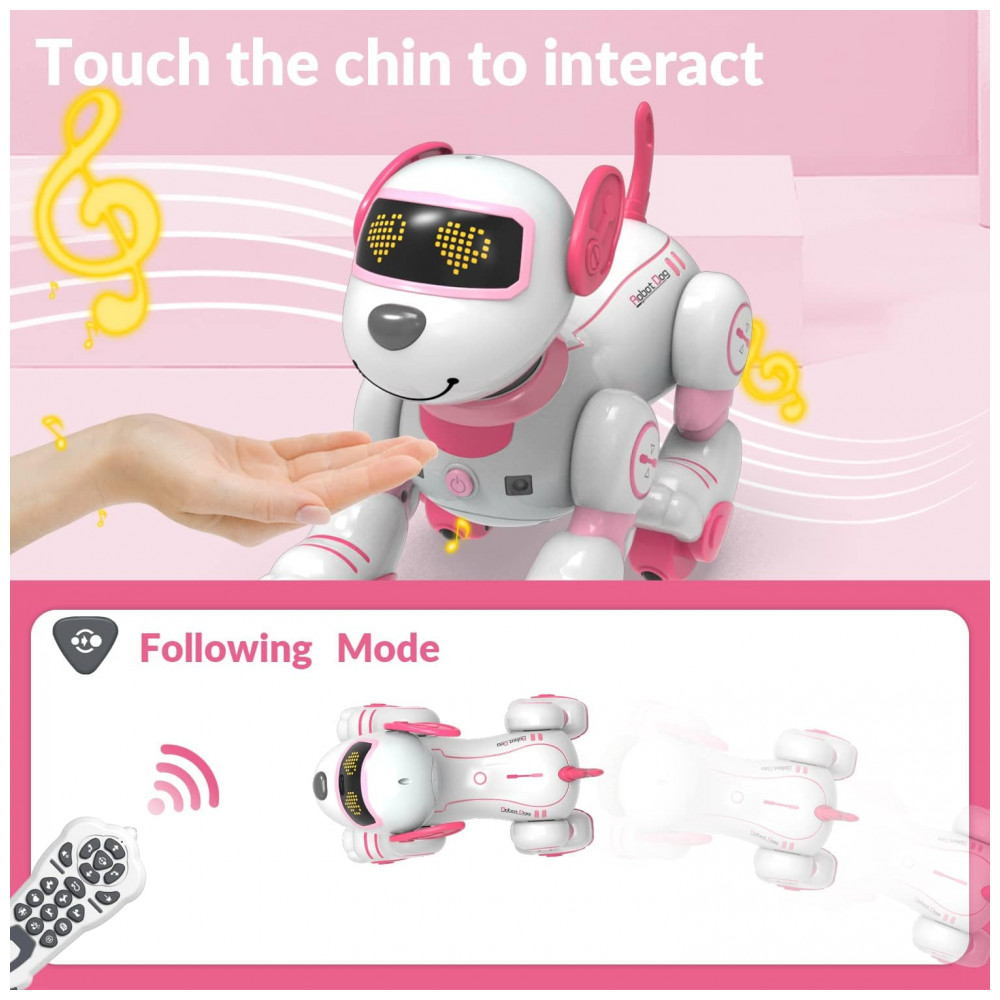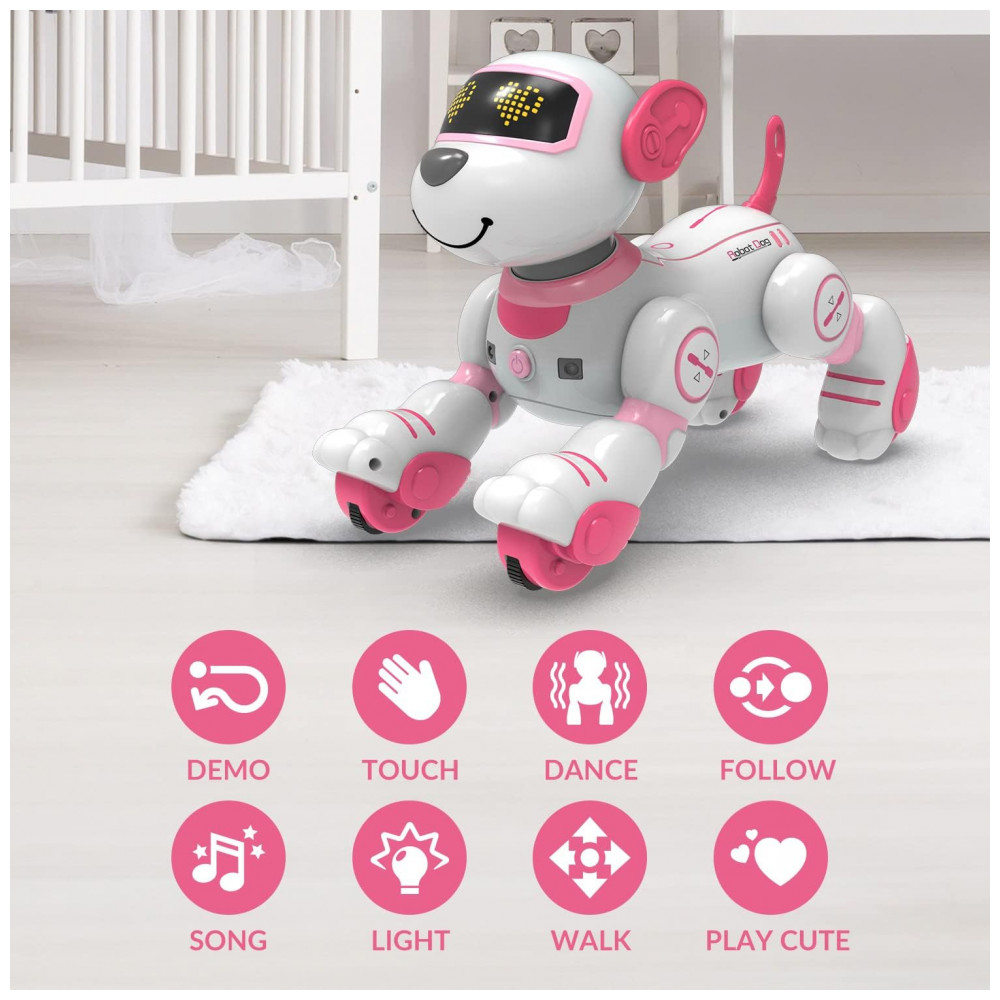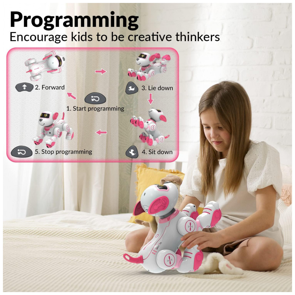 Robô pet interativo STEMTRON cachorro com controle remoto programação música e dança – Rosa