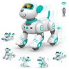 O modo de programação permite registrar sequências de ações, como andar para frente, para trás, virar à esquerda, virar à direita e seguir o usuário, com reprodução na ordem definida pela criança. O robô executa acrobacias predefinidas, incluindo sentar, cumprimentar, apoiar-se nas patas dianteiras, girar e simular flexões, acionadas por botões específicos no controle remoto. Funções de música e dança incluem rotinas com músicas exclusivas e três canções infantis, alternadas pelos botões de dança e canto.
