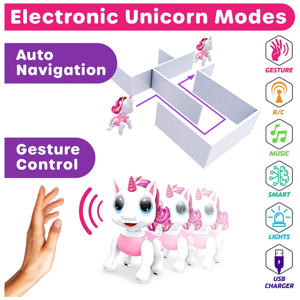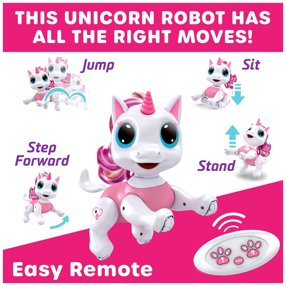 Power Your Fun Robo Pets Unicorn Toy Rosa – Robô Interativo Programável com Controle por Gestos e Remoto para Crianças a Partir de 3 Anos