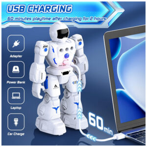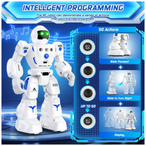 Com função de programação, a criança pode registrar uma sequência de movimentos ou ações que o robô executará automaticamente. A autonomia estimada de até 60 minutos após cerca de 2 horas de carga via cabo USB torna o brinquedo ideal para sessões prolongadas de brincadeira. Feito em plástico ABS de alta resistência e com design seguro para uso infantil, este robô é uma excelente opção de presente para aniversários ou datas especiais, estimulando coordenação motora, imaginação e noções iniciais de programação.