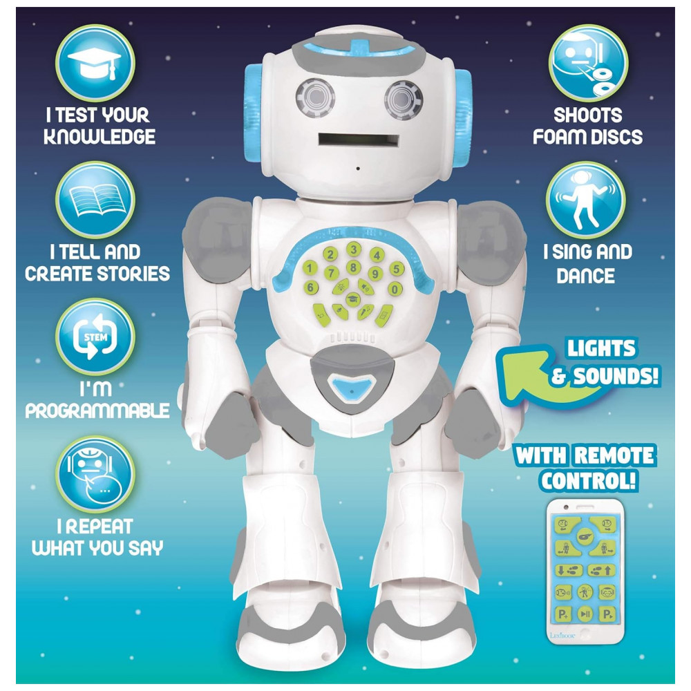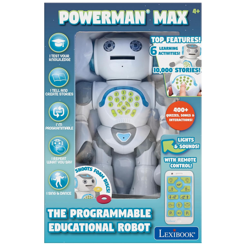 Robô Programável Canta e Conta mais de 10 Mil Histórias para Crianças de 3 Anos ou Mais LEXIBOOK ROB80EN Branco