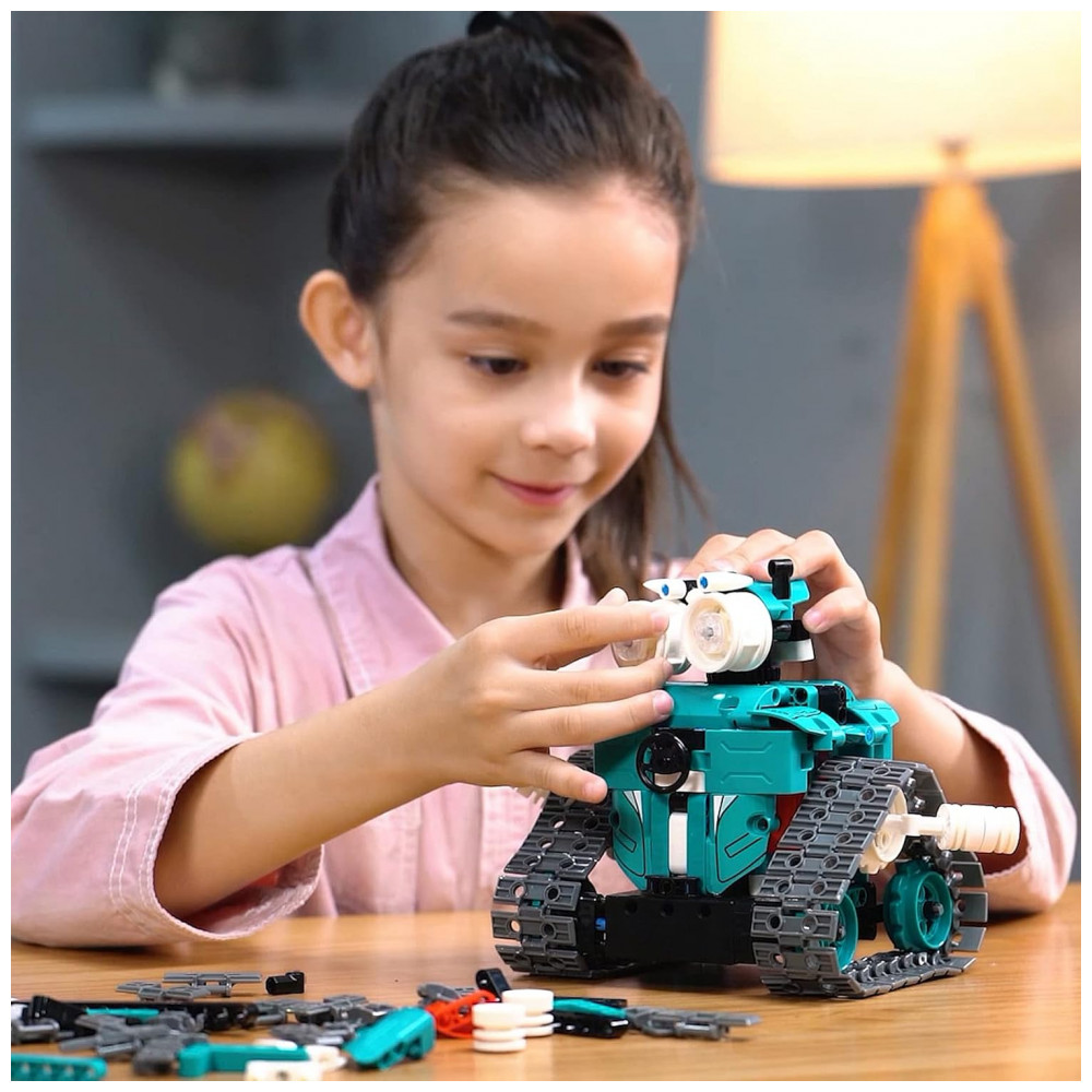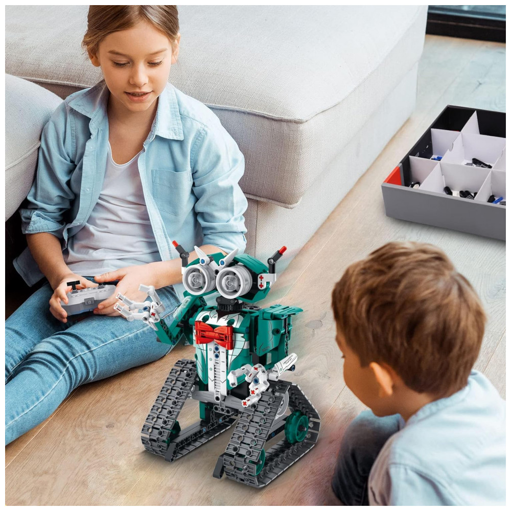 RC Robot Build Kit 3in1 Set 440 peças, as crianças vão construir um lindo robô com gravata borboleta vermelha cujos dedos podem mover e segurar coisas, também reconstruir em um tanque de acrobacias ou uma garota robô com grampo de cabelo vermelho. Os melhores e mais populares brinquedos de robótica para meninos e meninas de 8 a 12 anos.
