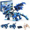CONTROLE REMOTO E DE APLICATIVO Este conjunto de dinossauro robô mecânico pode se mover suavemente em todas as direções, seja em terreno plano ou acidentado, girar até 360 graus e possui juntas giratórias flexíveis. As crianças podem usar um aplicativo ou usar controles remotos para fazer seus robôs realizarem operações de sua escolha. O aplicativo de codificação é totalmente baseado em ícones e muito intuitivo, para que até mesmo os iniciantes em codificação completos possam aproveitá lo.