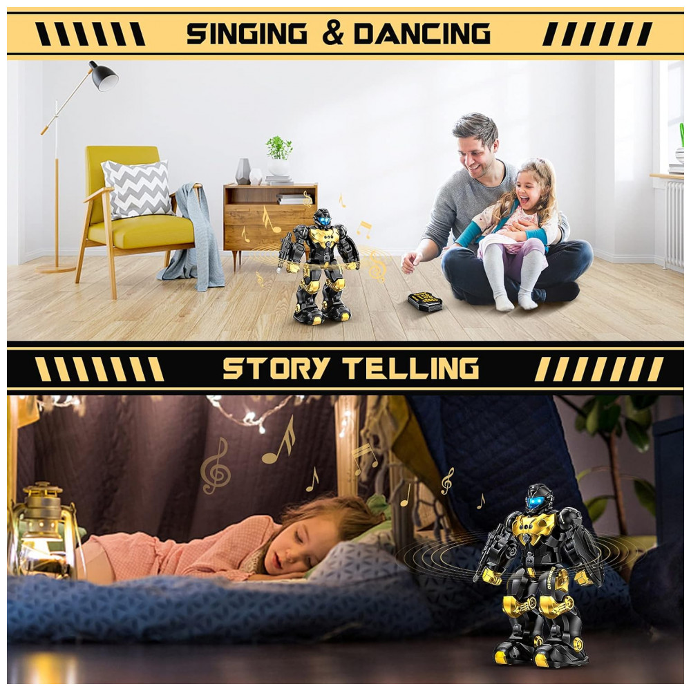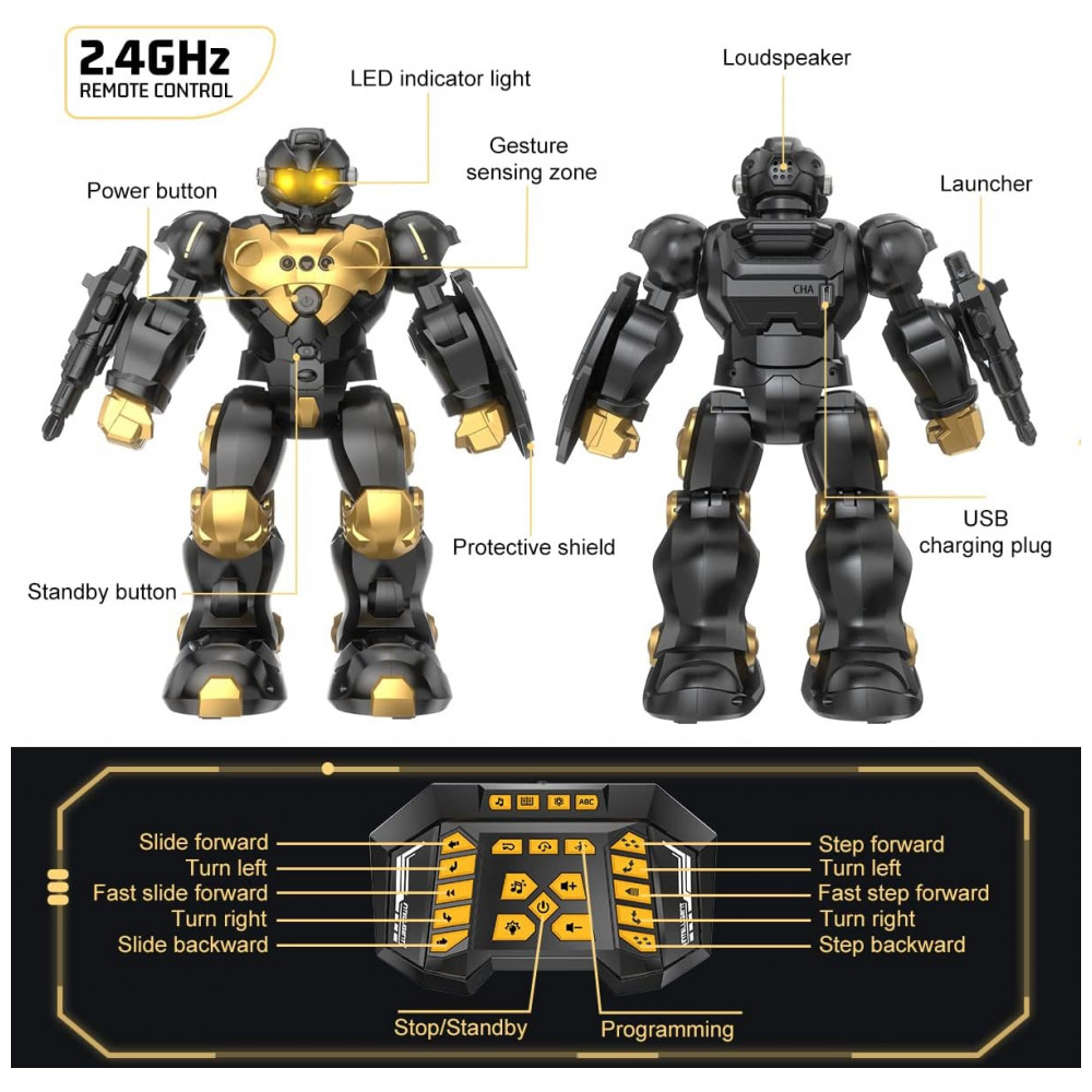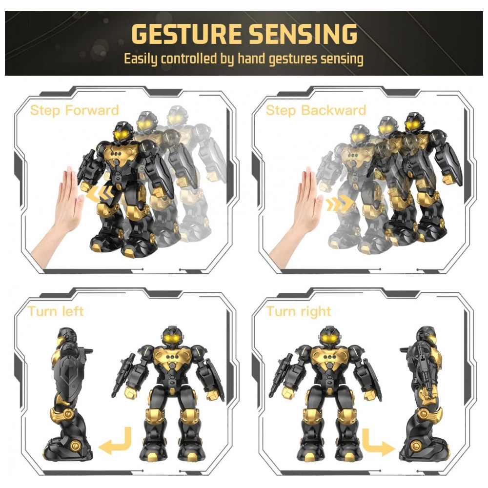 Robô Programável Inteligente Semour com Controle Remoto e Detecção de Gestos para Crianças Acima de 3 Anos Preto e Dourado