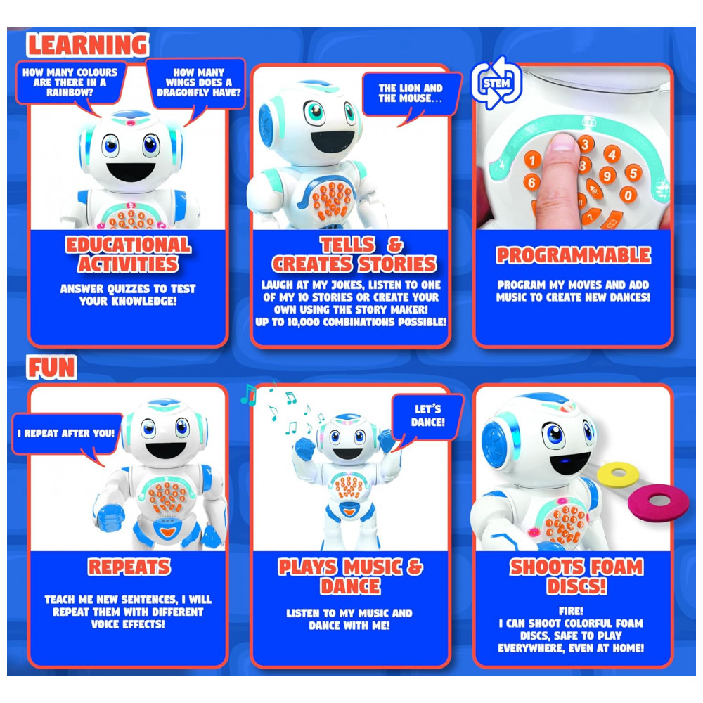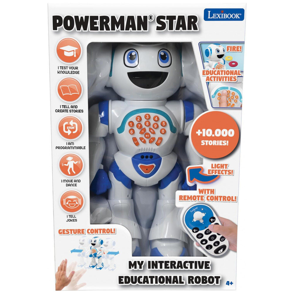 REPETE O QUE VOCÊ DIZ Com a função de reprodução e gravação, o Powerman repetirá o que você diz com sua divertida voz de robô. Ele também irá memorizá los e reutilizá los mais tarde.