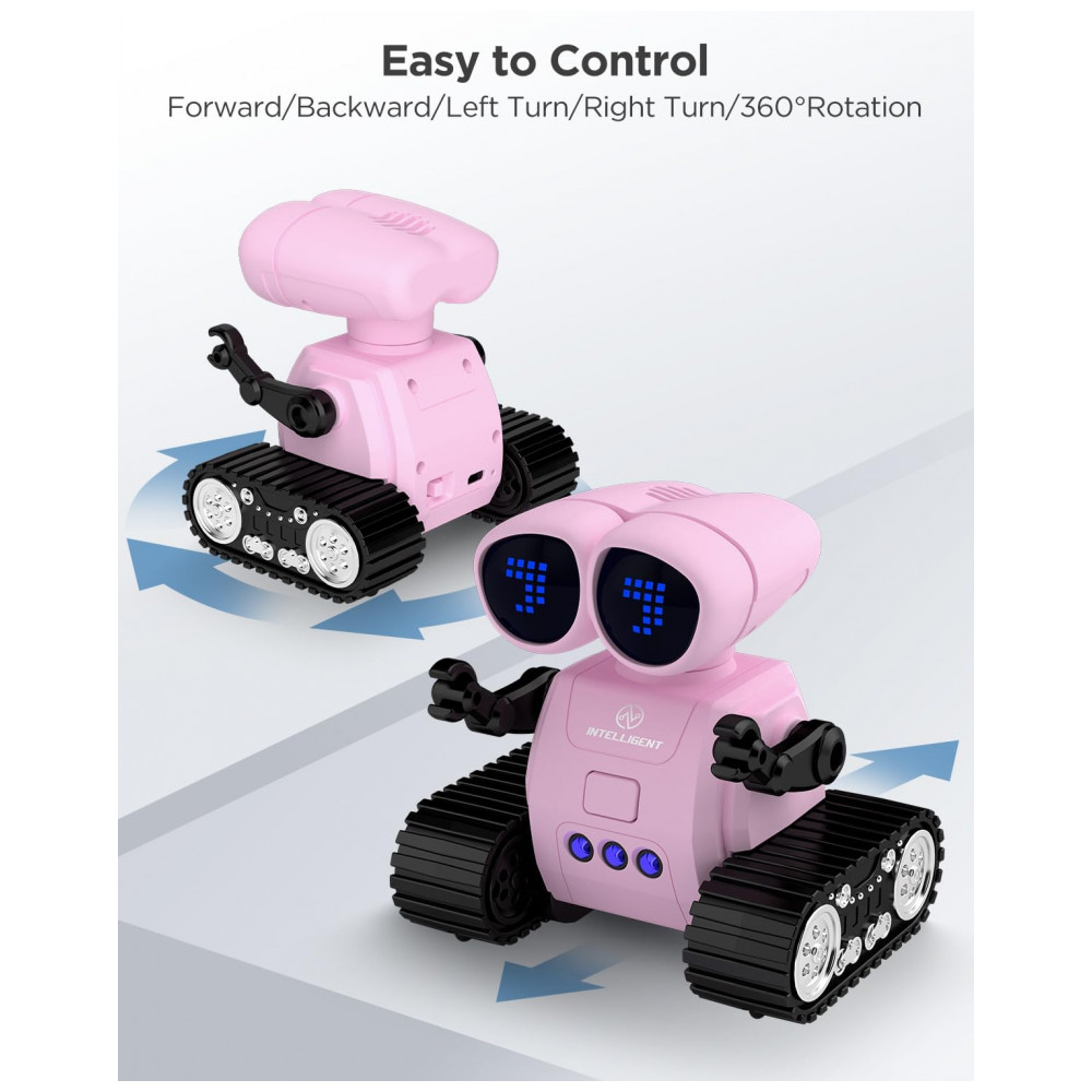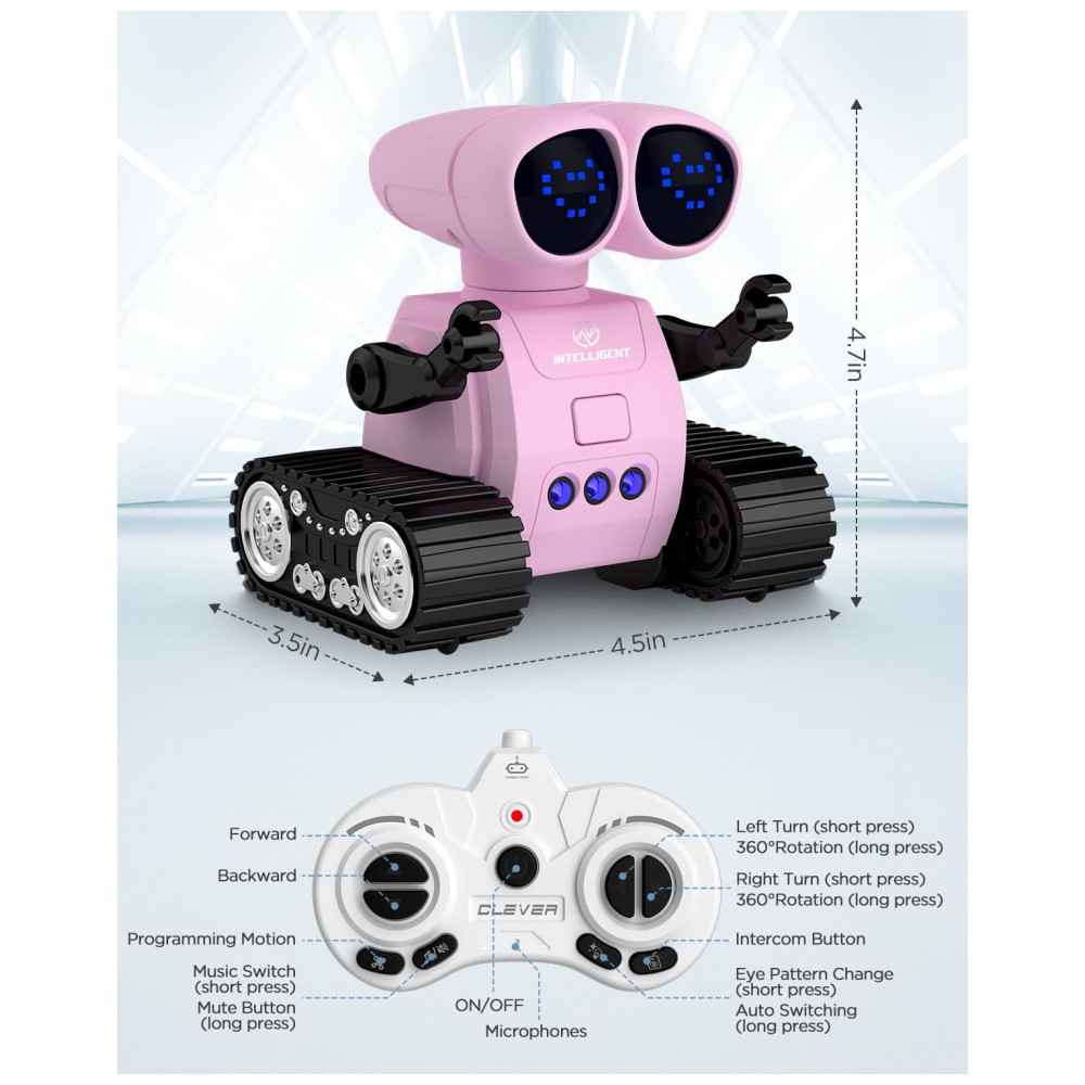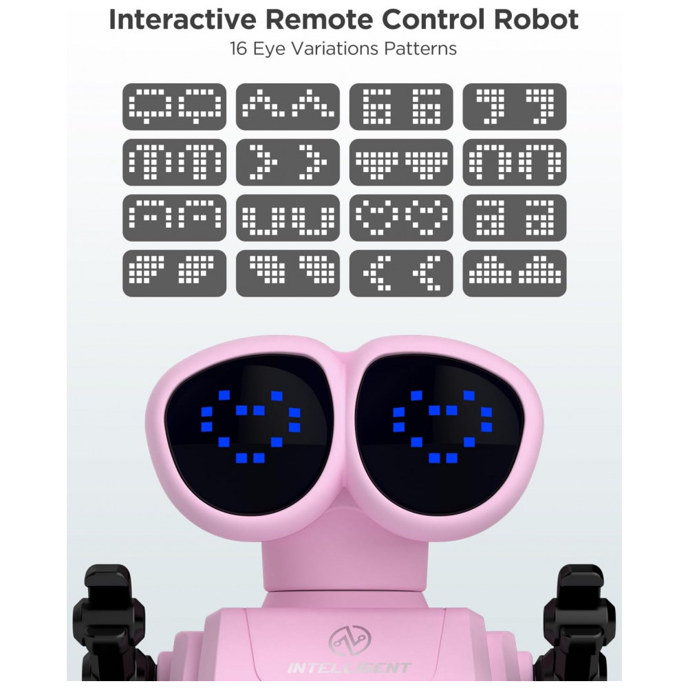 O robô programável Dzxlin combina diversão, tecnologia e aprendizado em um único brinquedo, ideal para crianças a partir de 3 anos. Com acabamento rosa vibrante e detalhes estilizados, ele projeta luzes coloridas durante os movimentos, criando um espetáculo visual enquanto se movimenta. O robô responde a gestos da mão e ao controle remoto 2,4 GHz, podendo andar para frente, para trás, girar e executar rotinas automáticas de dança e música.