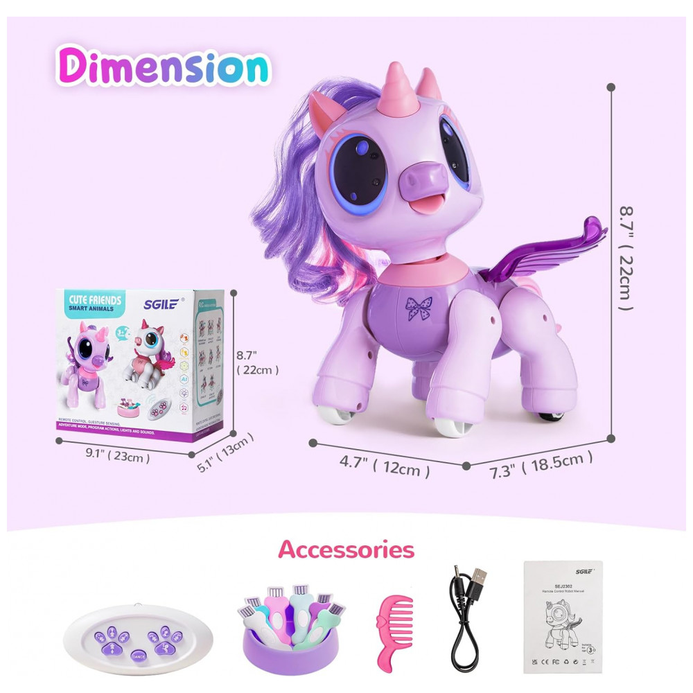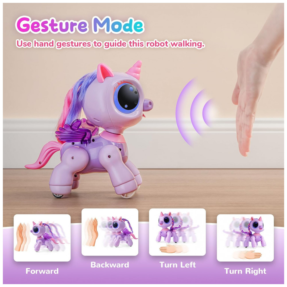 O robô programável da marca SGILE combina diversão, interação tecnológica e aprendizagem de forma envolvente para crianças a partir de cerca de 6 anos. Com acabamento e design moderno, ele responde rapidamente a gestos da mão para avançar, recuar ou girar, além de permitir controle via controle remoto 2,4 GHz. Uma das funções mais estimulantes é o modo de programação, que permite a inserção de até 50 comandos de movimento que o robô executa em sequência, promovendo o pensamento lógico, a coordenação motora e a criatividade.