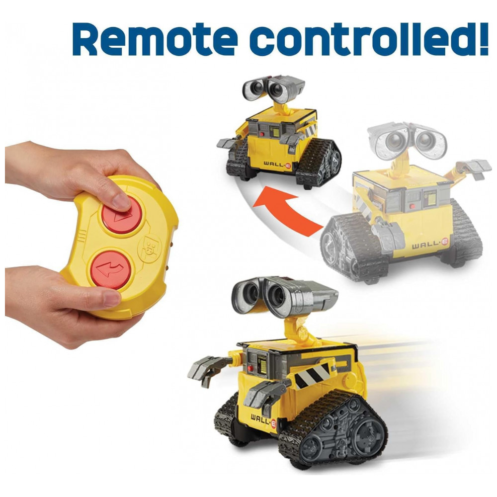 Alimentando o jogo imaginativo, esta unidade WALLE com controle remoto pode avançar e recuar com um giro em j para mudar de direção usando o controle remoto de 2 botões.