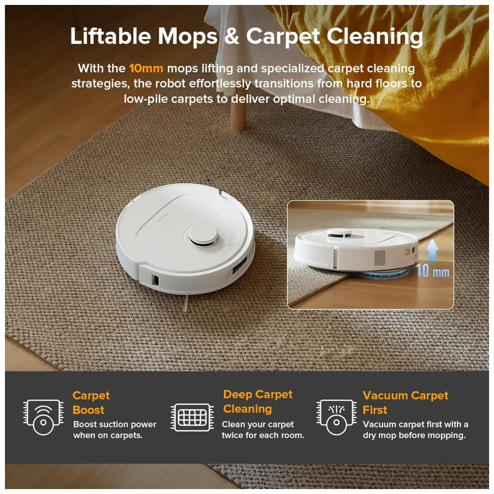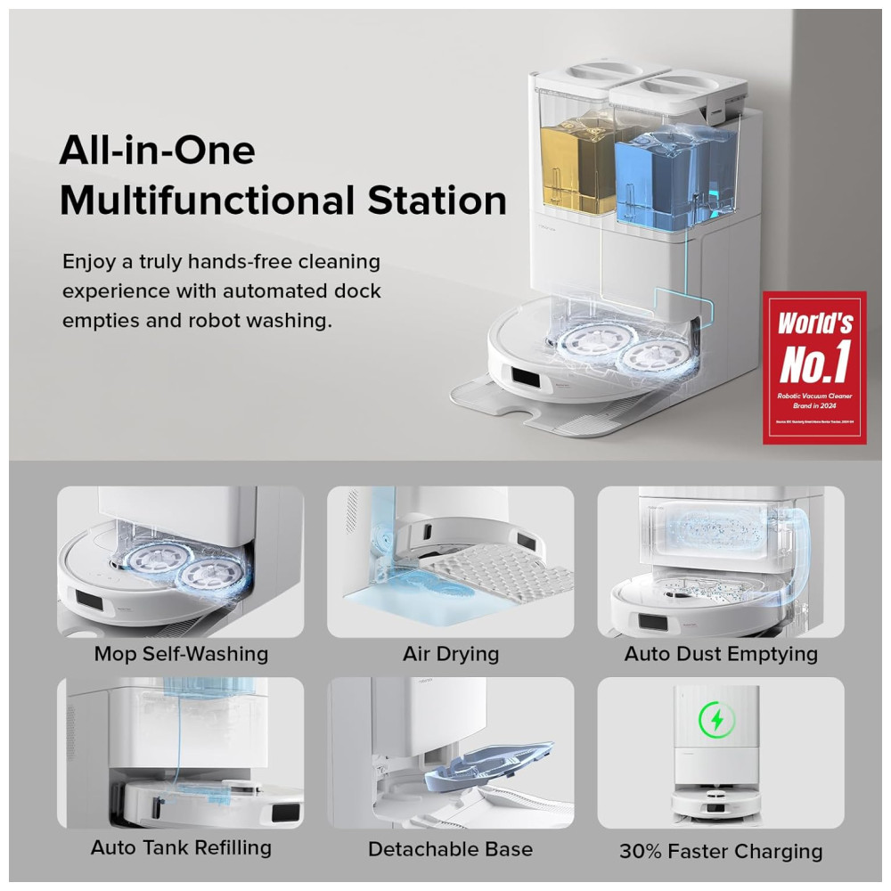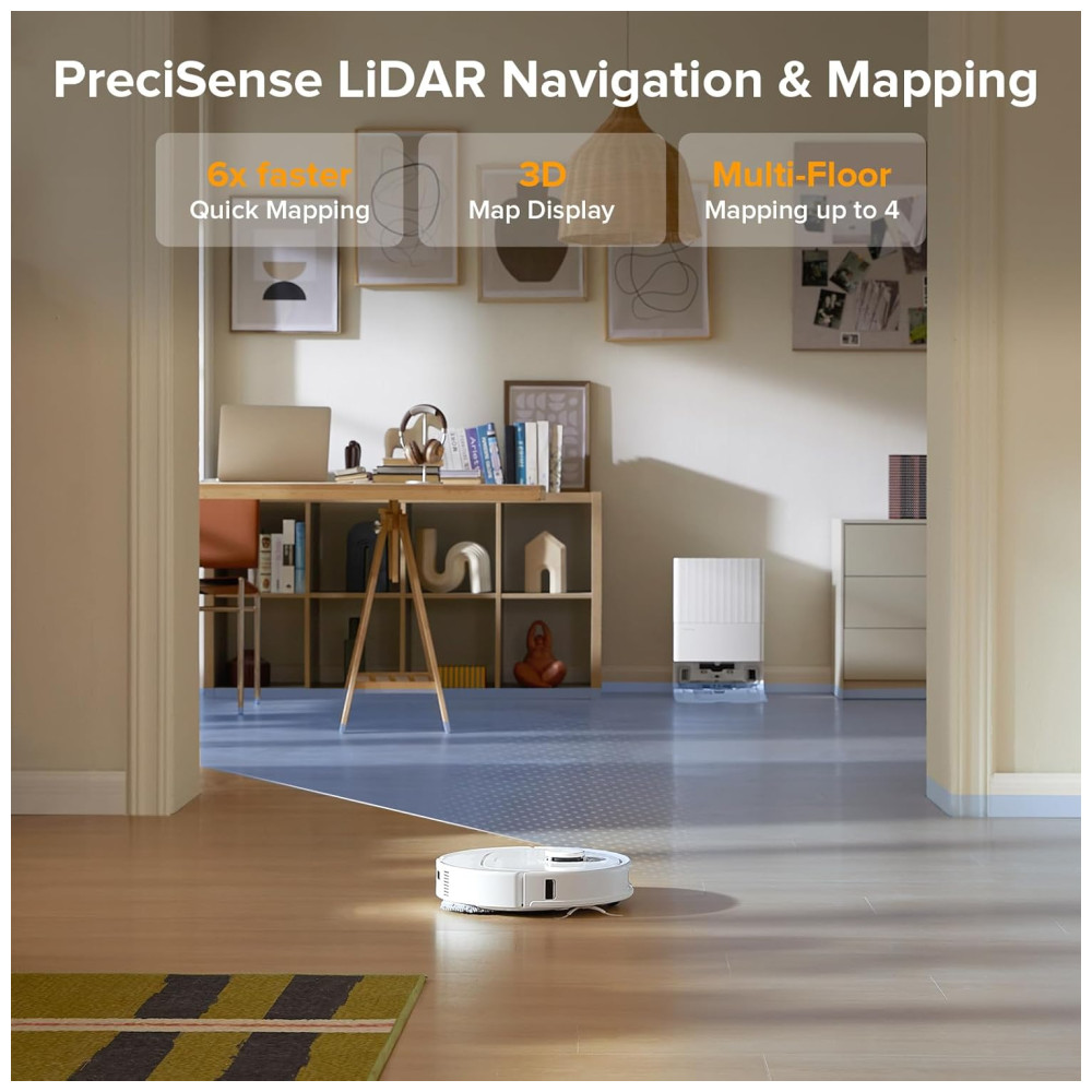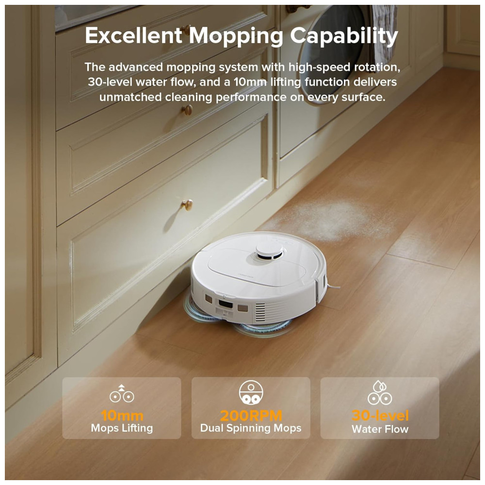 Com o Aspirador e Mopa Roborock Qrevo Series, você terá um desempenho de limpeza incomparável. Com uma sucção potente de 8000Pa, ele captura facilmente sujeira, detritos teimosos e pelos de animais de estimação. A estação de carregamento tudo-em-um esvazia automaticamente a poeira, recarrega a água, lava e seca os panos de limpeza, mantendo o robô sempre pronto para a próxima limpeza. O sistema de escova sem emaranhados evita que pelos se enrolem, ideal para lares com animais. Além disso, a navegação reativa evita obstáculos com precisão, garantindo uma limpeza contínua. Com dois mops giratórios, ele remove manchas difíceis com facilidade. O sistema de mapeamento LiDAR cria mapas detalhados em tempo real para navegação precisa. Com o aplicativo Roborock, você pode personalizar rotas, agendar limpezas, definir bloqueios para crianças, entre outras funcionalidades. Transforme a limpeza da sua casa com o Roborock Qrevo Series!