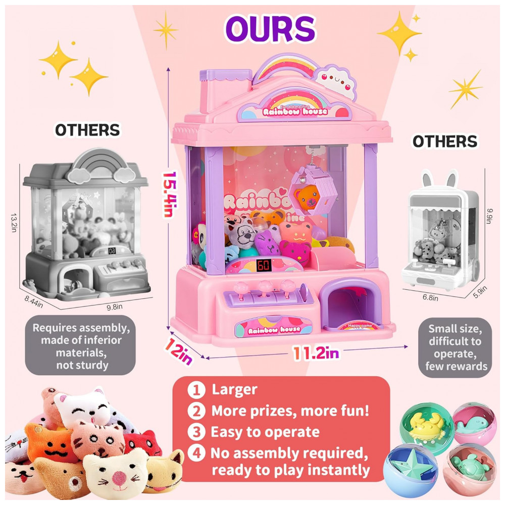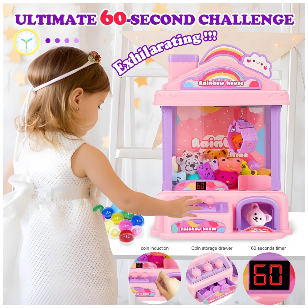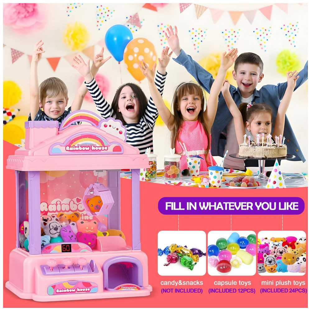 ROHSCE Mini Máquina de Garra Rosa para Crianças | Brinquedo Arcade Elétrico com LED e Som Ajustável Presente de Aniversário para Meninas 4+