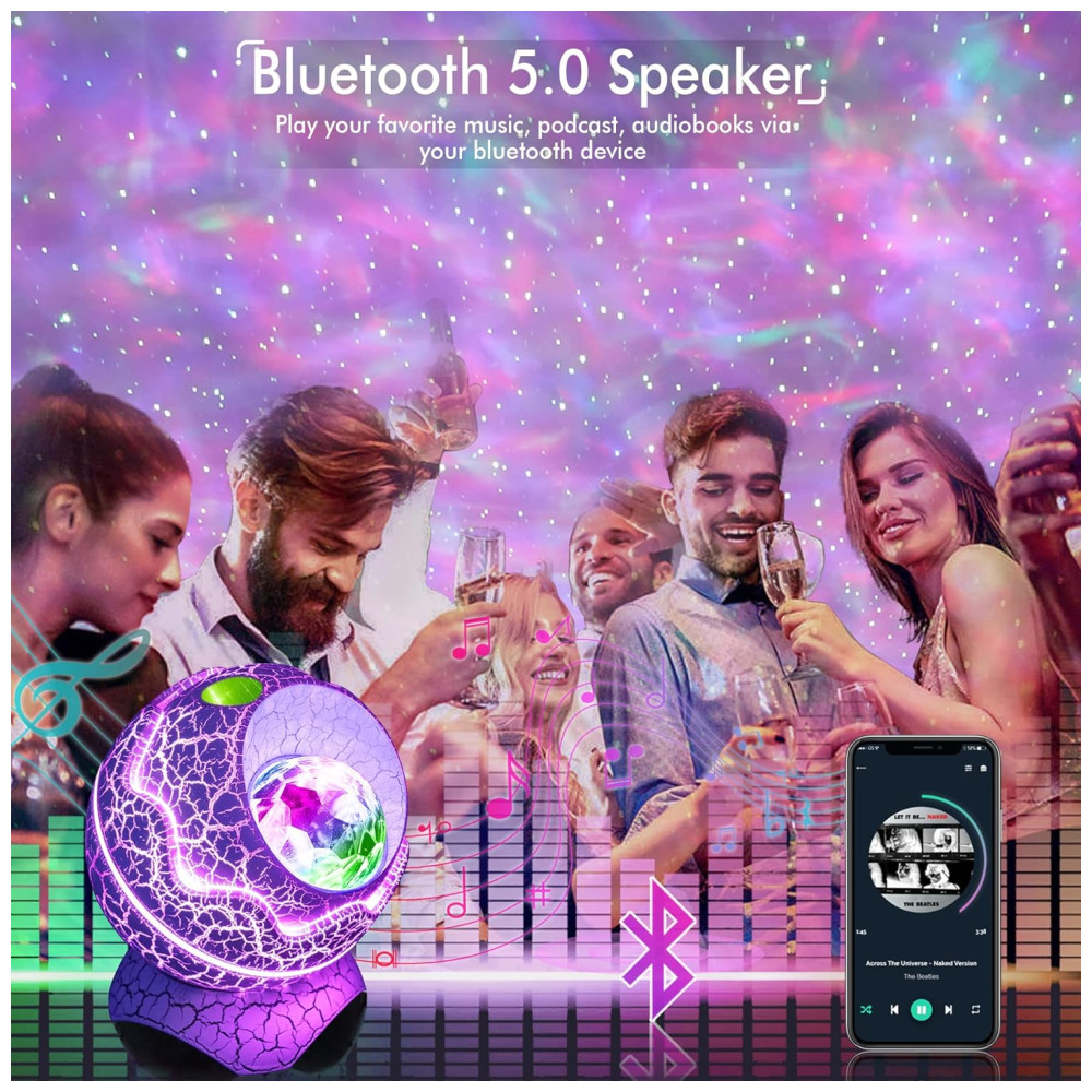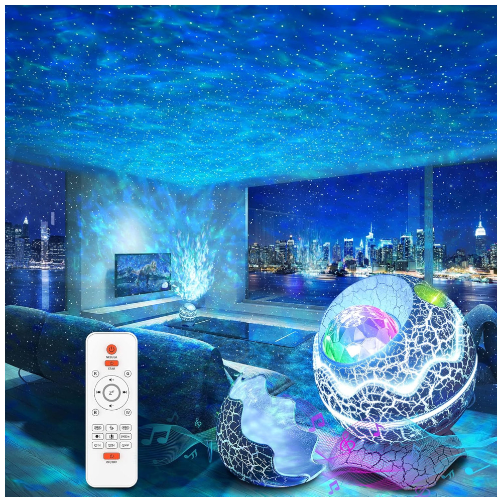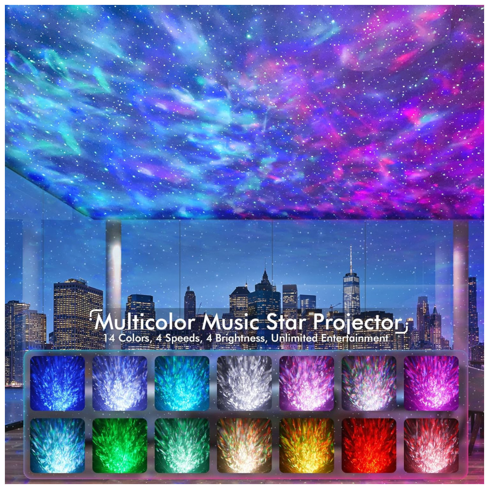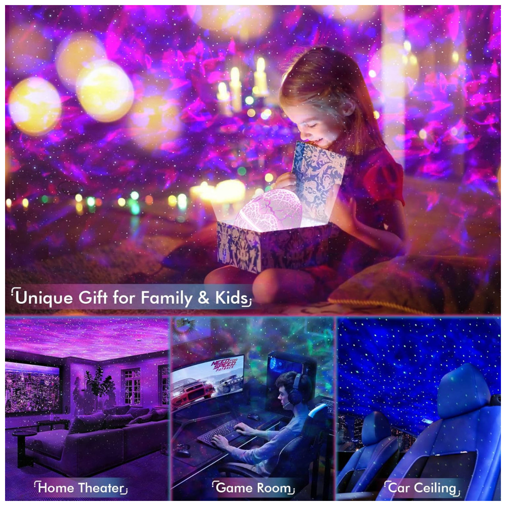 Projetor de luz noturna 4 em 1 estrela o projetor estrela Rossetta combina um projetor, uma lâmpada de luz noturna, uma máquina de ruído branco e um reprodutor de música em um único dispositivo, o que cria uma experiência audiovisual extraordinária. Apresenta 14 cores vibrantes que projetam estrelas brilhantes e memorizam nuvens nebulosas, o projetor starlight traz o vasto céu estrelado para dentro de casa, onde você e as crianças podem desfrutar da pacífica galáxia em seu quarto ou quarto de criança. Aprecie a beleza do espaço no conforto da sua casa.