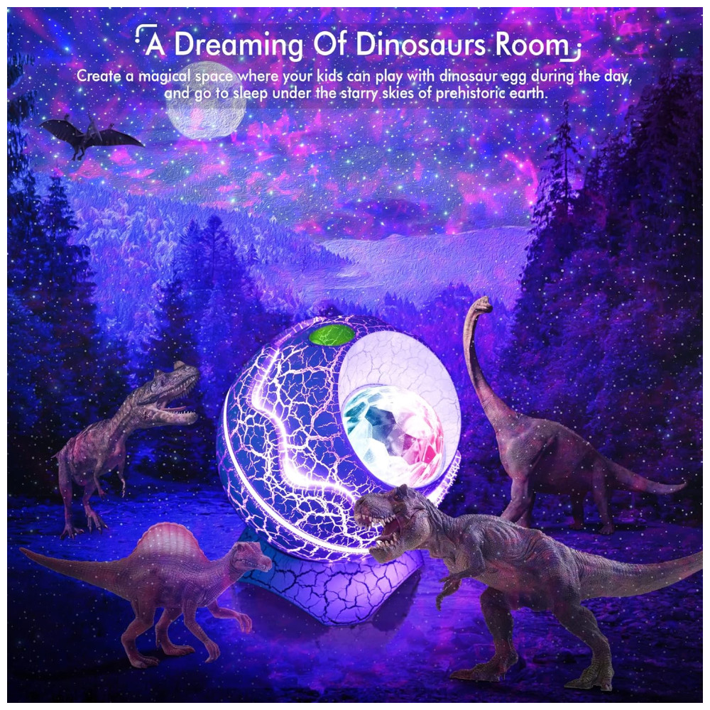 White Noise Sound Machine O projetor de luz noturna inclui 19 sons populares de ruído branco que são relaxantes e calmantes enquanto você tenta adormecer ou durante a meditação. Combinando os sons suaves da máquina de som de ruído branco com a memorizante luz noturna RGB LED, amiga do bebê, você terá uma experiência inesquecível que deixará qualquer alma à vontade. Crianças e adultos podem desfrutar deste divertido e versátil projetor de luz noturna estrelada de ovo de dinossauro para todas as noites de sono repousante