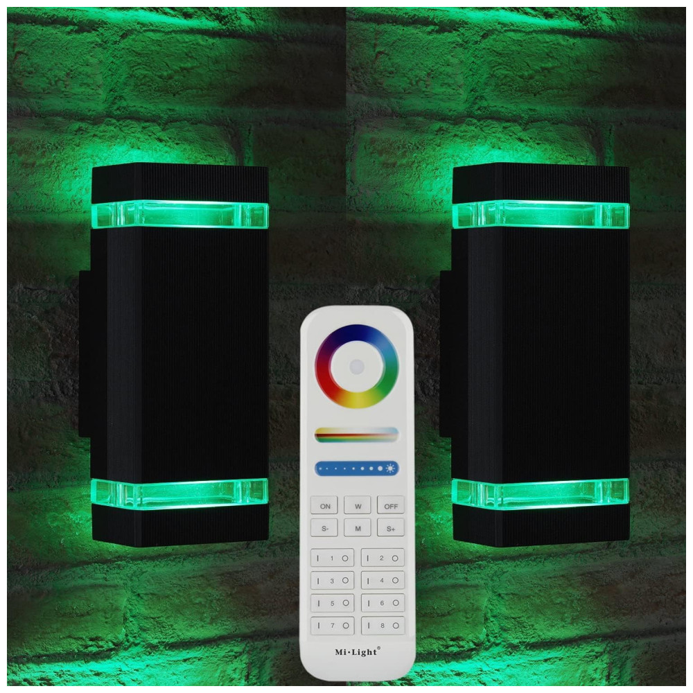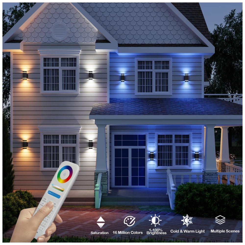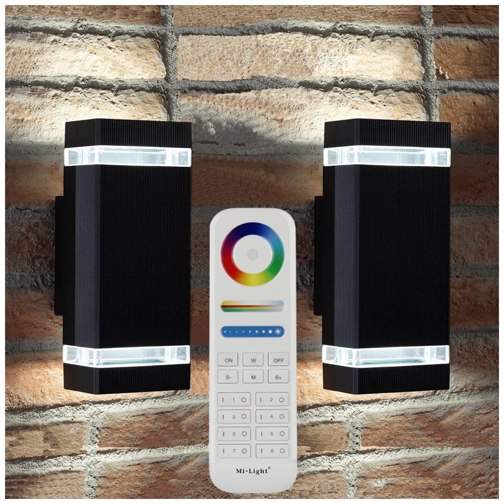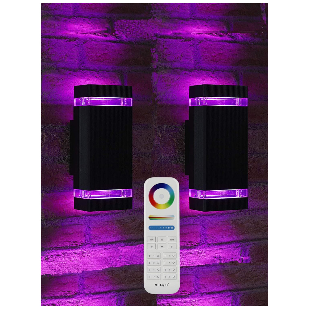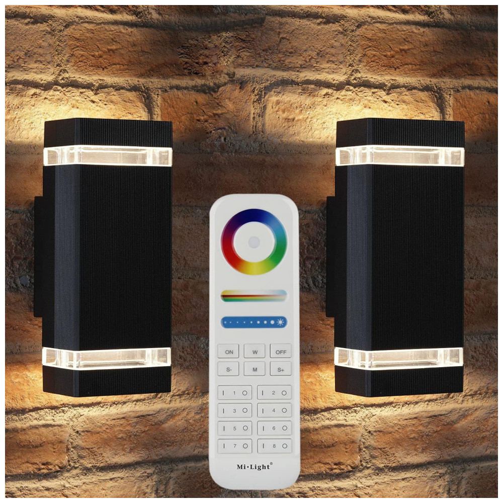 Rosykite Arandela Luminária Inteligente Externa de Parede à prova dágua 1200LM 2700K com Controle Remoto 2 Unidades Preta