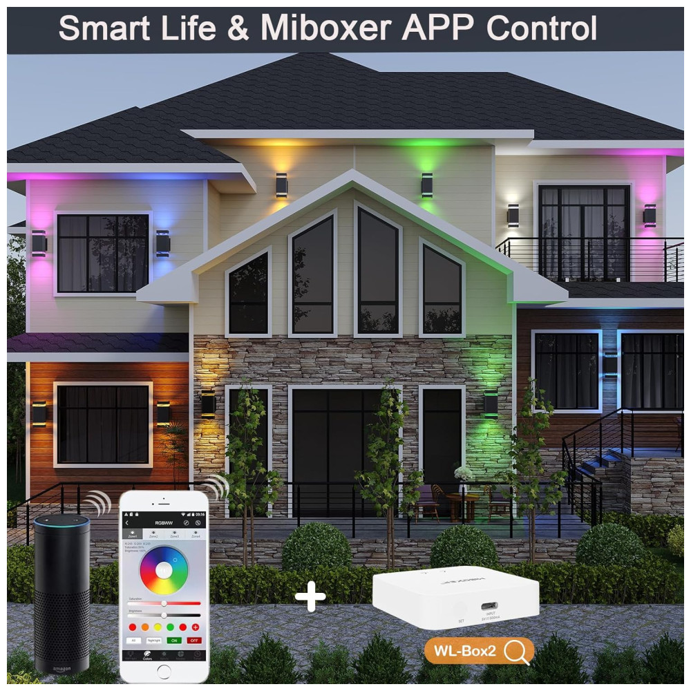 4. SINCRONIZAR MÚLTIPLAS LUZES SIMULTANEAMENTE Sincronize toda a sua casa com o toque de um dedo. Luzes diferentes podem ser controladas individualmente ou ao mesmo tempo. Várias luzes de parede que mudam de cor podem ser controladas simultaneamente usando um controle remoto e várias luzes de parede podem ser sincronizadas a uma zona. A tecnologia inteligente permite que você crie o ambiente certo para cada momento