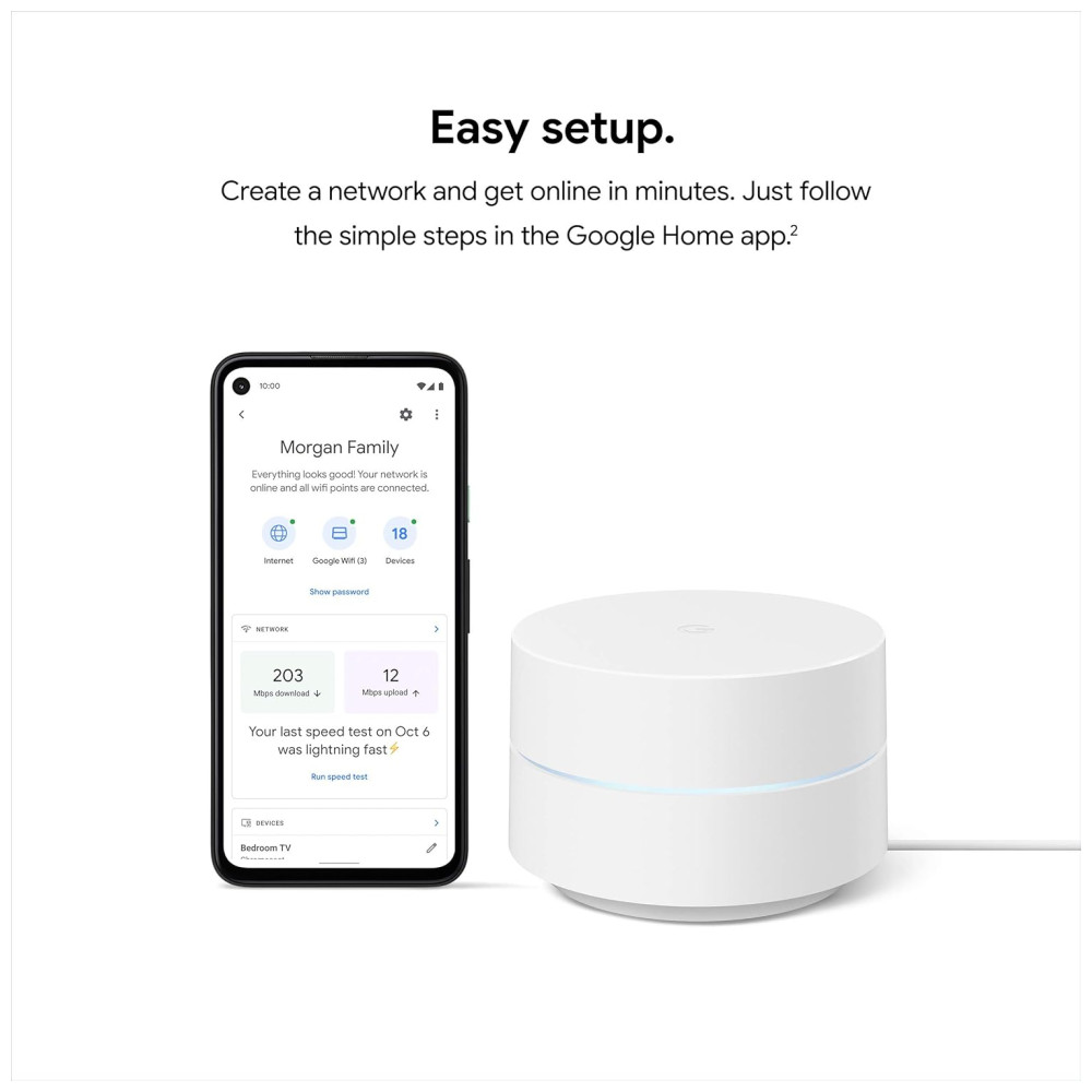 Funciona com todos os pontos Google Wifi e pode ser adicionado a qualquer sistema Nest Wifi existente basta adicionar mais pontos se precisar de mais cobertura