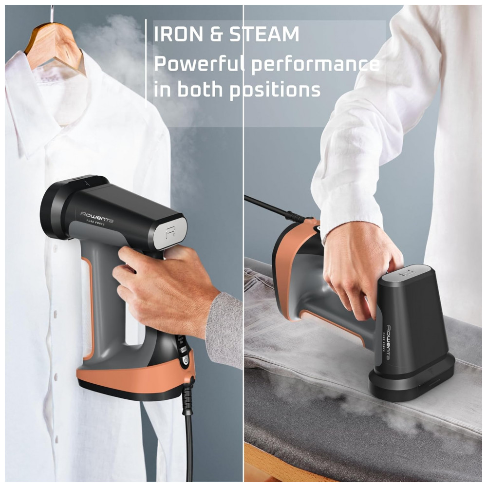 Rowenta Ferro a Vapor 3 em 1 para Roupas Steamer Portátil Removedor de Lint Tanque 200ml 1875 Watts Desligamento Automático Preto Cobre