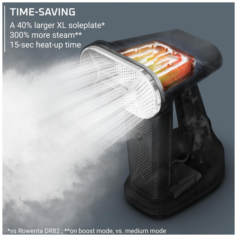 Este dispositivo portátil a vapor para roupas oferece a combinação de vaporização vertical e passar a ferro horizontal, proporcionando resultados excepcionais. Equipado com um tanque de 200 ml, este ferro a vapor para roupas oferece até 12 minutos de cuidado contínuo e ininterrupto, perfeito para lidar com qualquer peça de roupa. O avançado sistema de almofadas reversíveis remove poeira e fiapos com facilidade. Com 1875 watts de potência, o ferro a vapor puro se torna um prático vaporizador para roupas, apresentando cinco configurações de vapor personalizáveis para atender a cada tipo de tecido. Economize tempo com a impressionante base XL, oferecendo 300 mais vapor para passar eficiente e preciso. Este vaporizador de roupas portátil é leve e possui um cabo de 2,6 metros para conveniência, garantindo que você possa manobrar com facilidade. O ferro a vapor também conta com a função de desligamento automático.