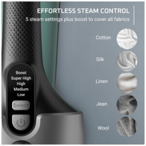 Benefícios do Produto: [‘Transições suaves entre vaporização vertical e passar a ferro’, ‘Base XL 40% maior e 300% mais vapor’, ‘5 configurações de vapor para todos os tecidos’, ‘Leve’],